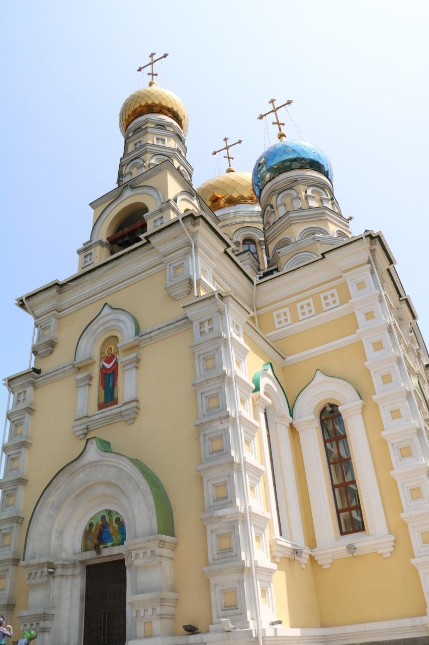 続いて 黄金色に光る玉ねぎ型ドームのロシア正教会を見学