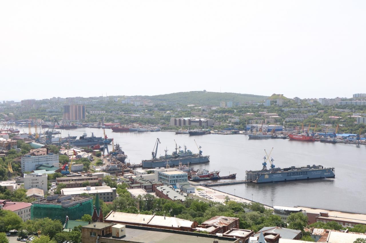 ウラジオストク港は軍港でもあり軍艦も停泊