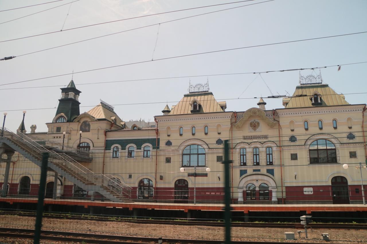 予定通り午前7時にウラジオストク港に接岸シベリア鉄道とウラジオストク駅が目の前に見えます。