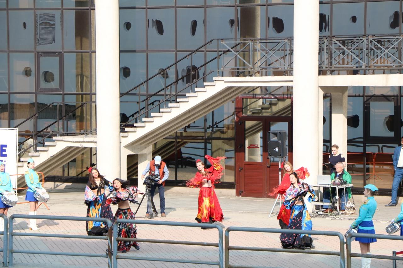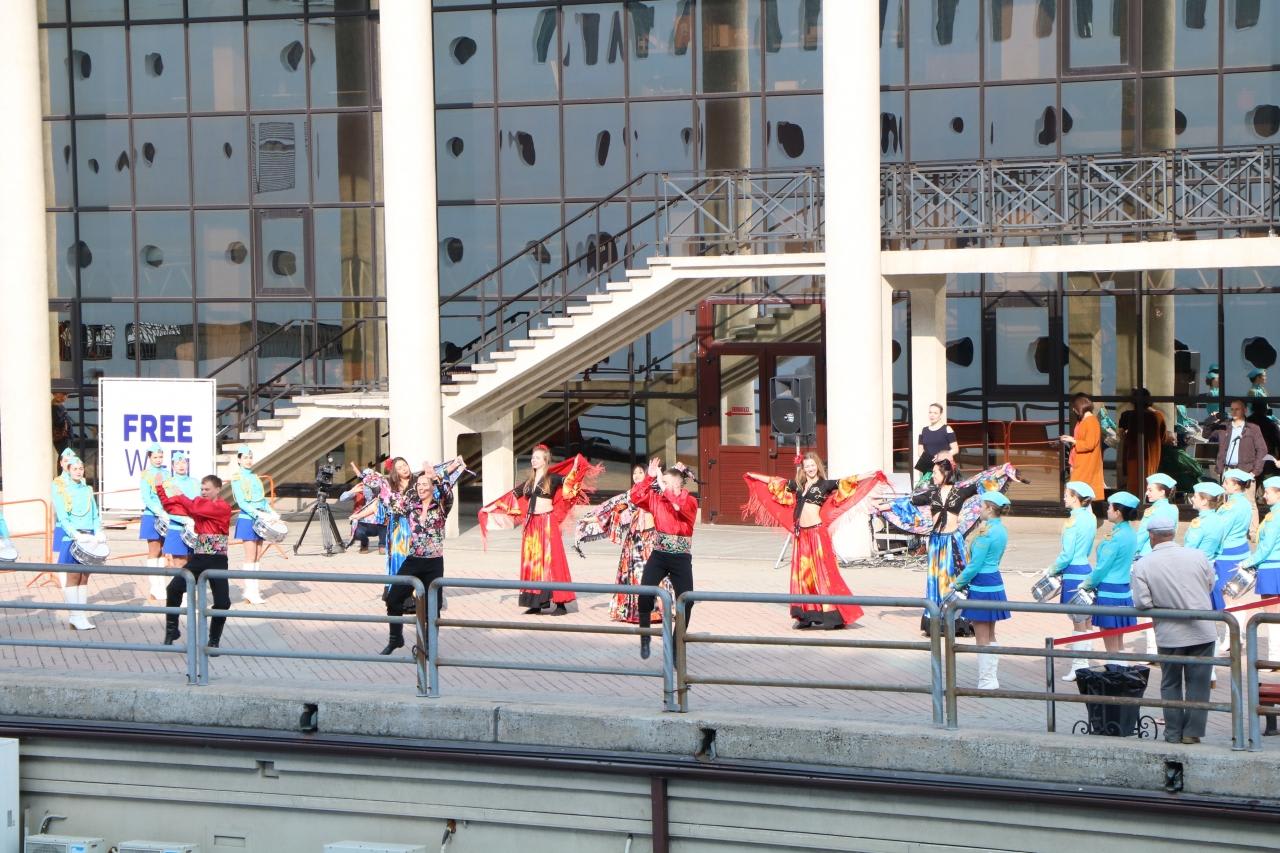 コスタネオロマンチカがウラジオストク港に着岸したと同時に盛大な歓迎セレモニーが行われ、ウラジオストク観光への期待に胸が膨らみました。