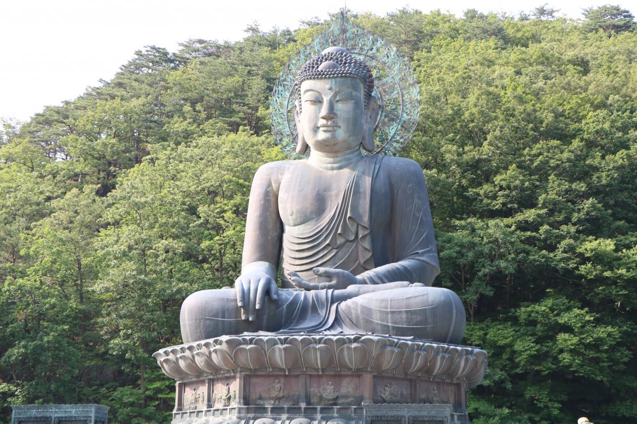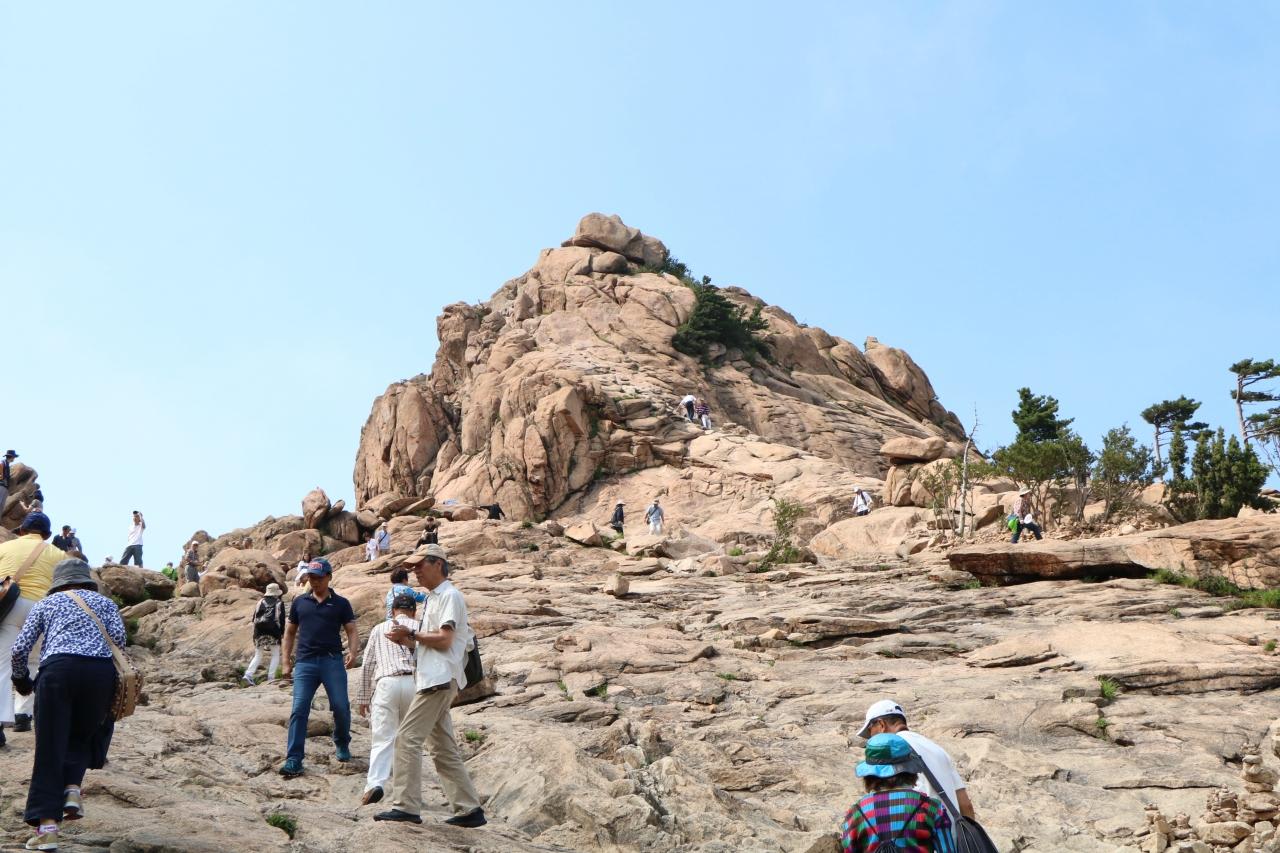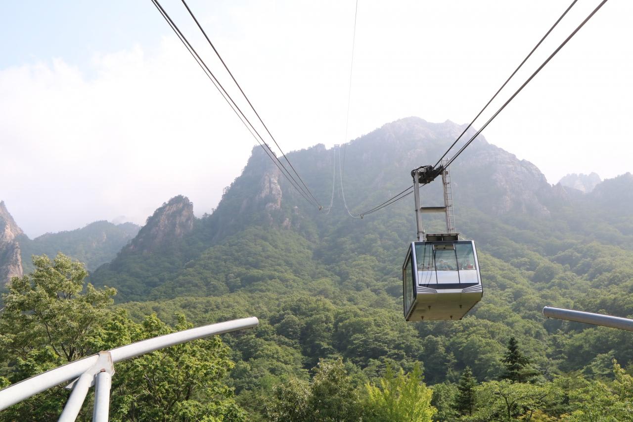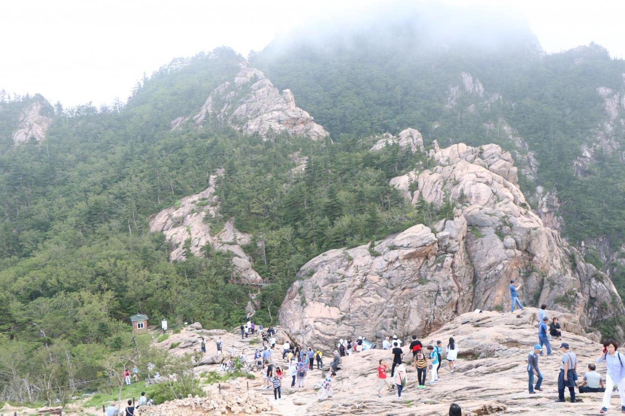 13時に入港し、観光バスに乗り込んだのは14時。21時出港なので半日の観光です。先ずは雪岳山国立公園を訪れました。雪岳小公園からロープウエイで一気に権金城へ。海抜670mからの勇壮な山々の眺めは素晴らしく徒歩20分位で岩場の頂上に登りました。下山し青銅弥勒大仏と新興寺を見物。