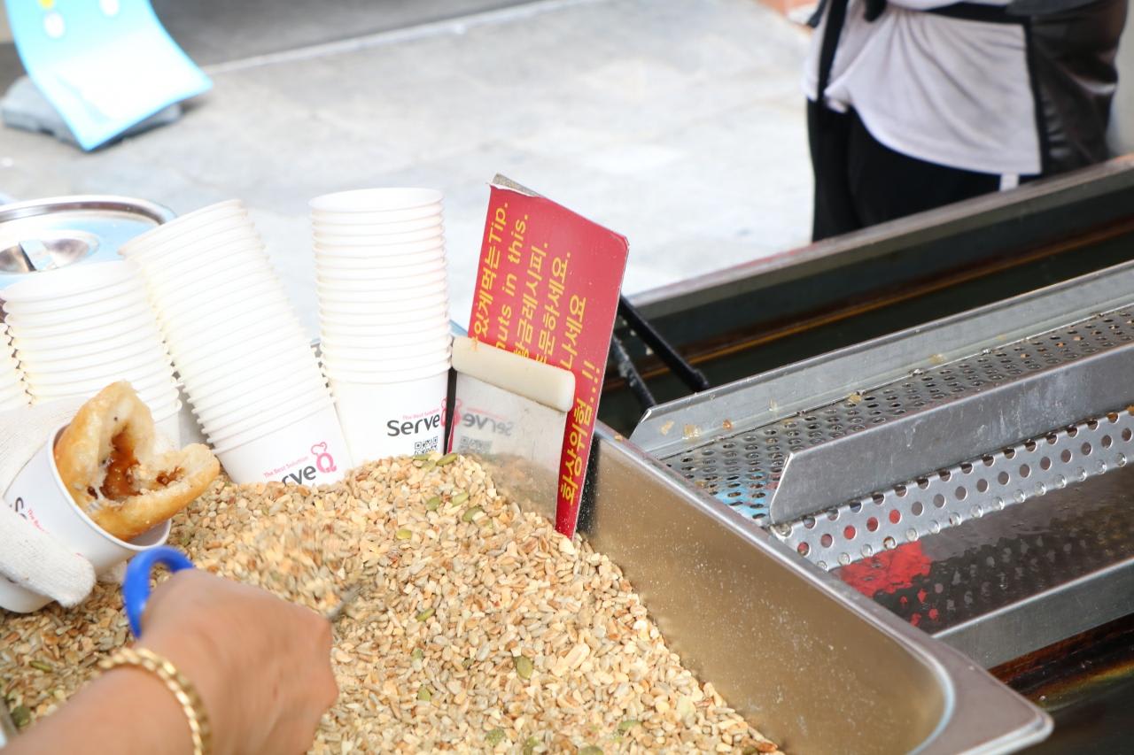 ホットクは餅米粉で作った生地に黒砂糖とシナモンを饅頭のように包んだおやきのような菓子
