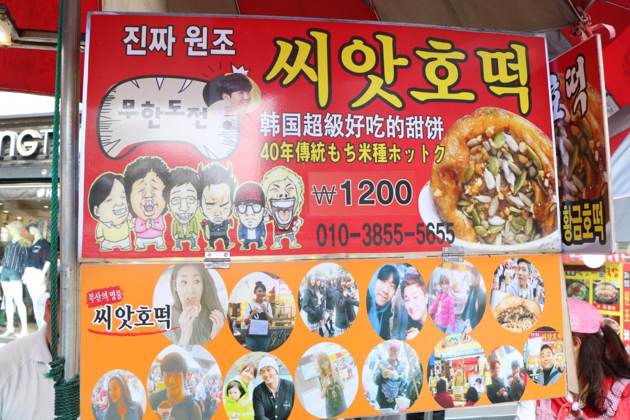 名物のホットク(1,200ウオン)の看板