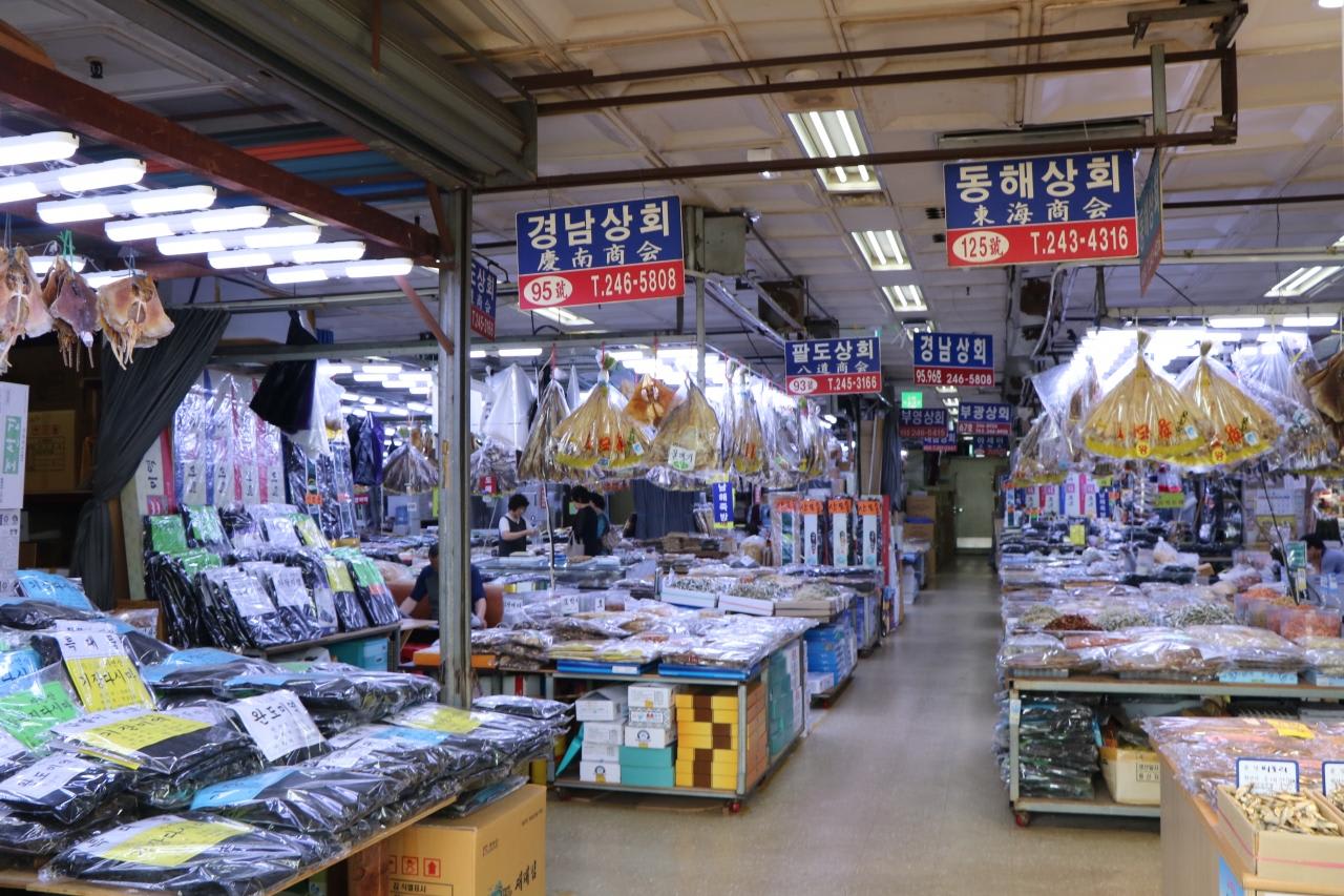干物や海苔を扱う店は静かな感じ