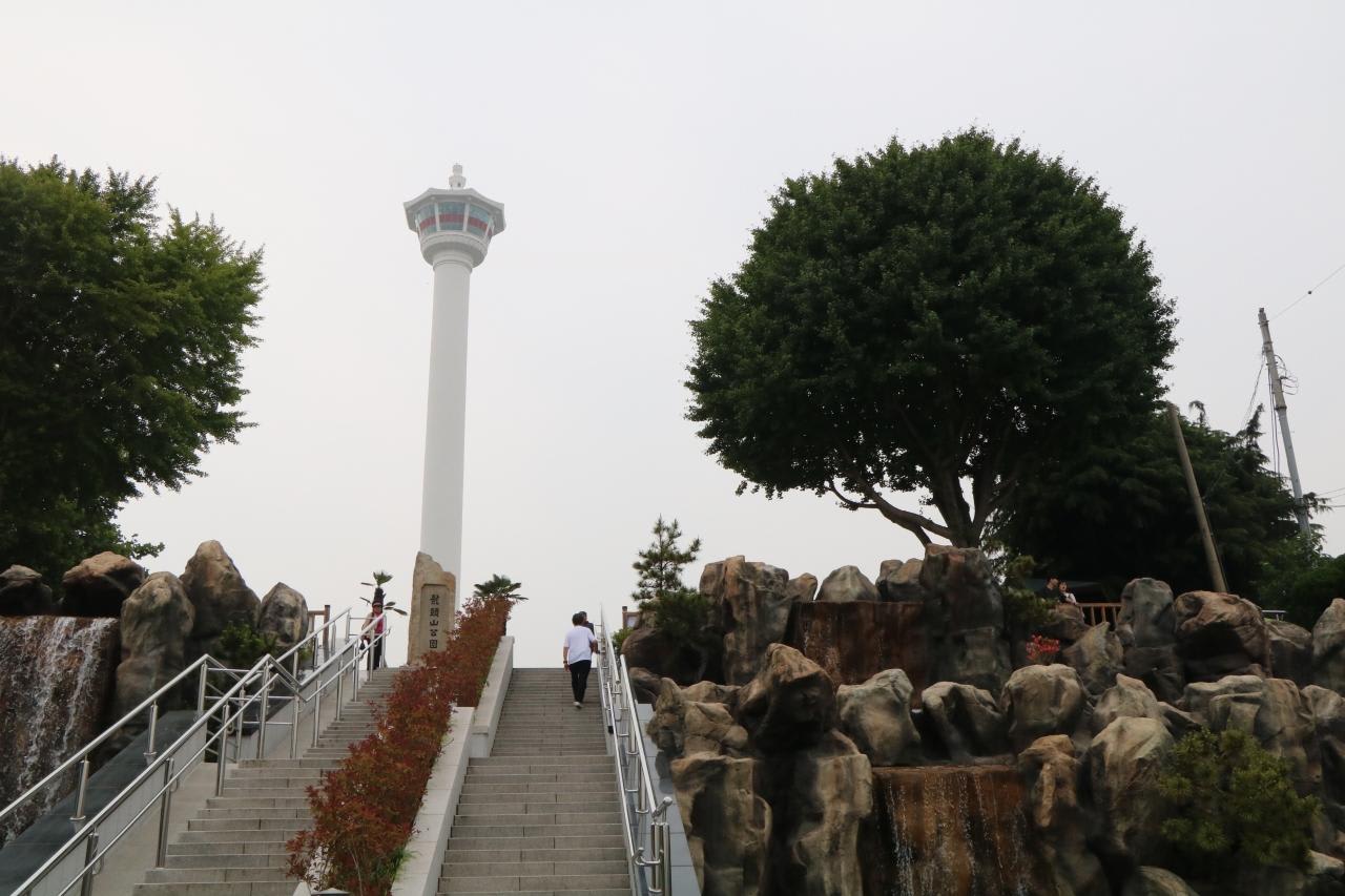 標高180mの龍頭山に到着。高さ120mのタワーに昇ろうとして進むも工事中という事でシャットアウト。龍頭山の標高と180mのタワー併せると あべのハルカスと同じ位の標高300m。展望台の標高300mから釜山の町並みを眺めようとエスカレーターを乗り継いで昇って来たのにガッカリ!