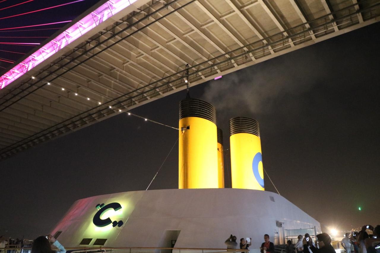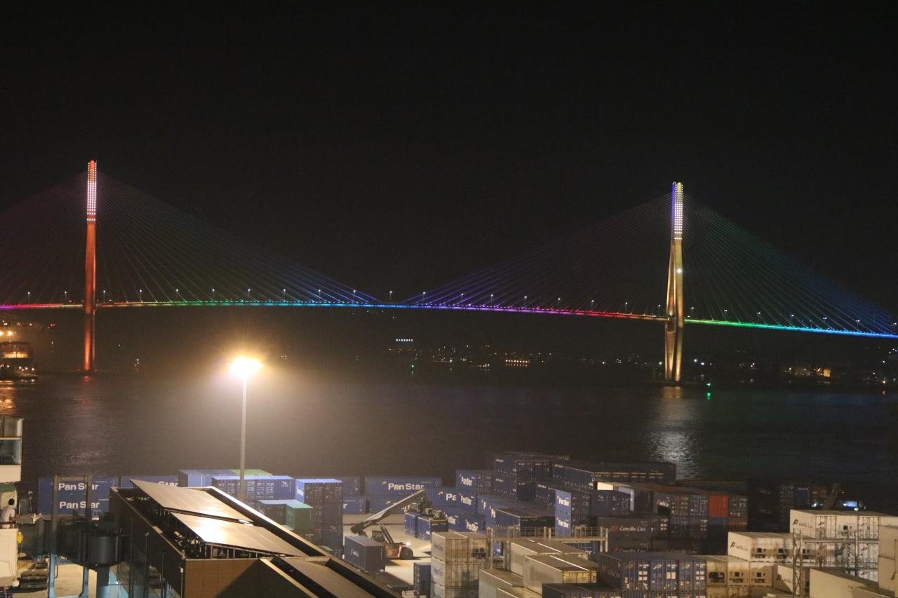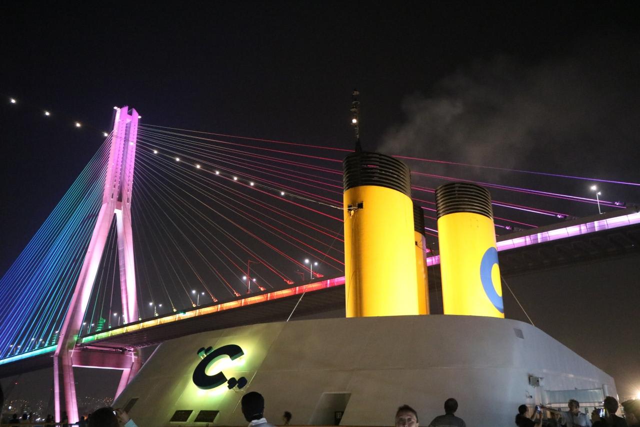従来は釜山港大橋手前の影島にある釜山国際クルーズターミナルに接岸でしたが、今回は釜山港大橋を潜り、完成した釜山国際旅客ターミナルに本船が横付けされるのが一番の楽しみです。