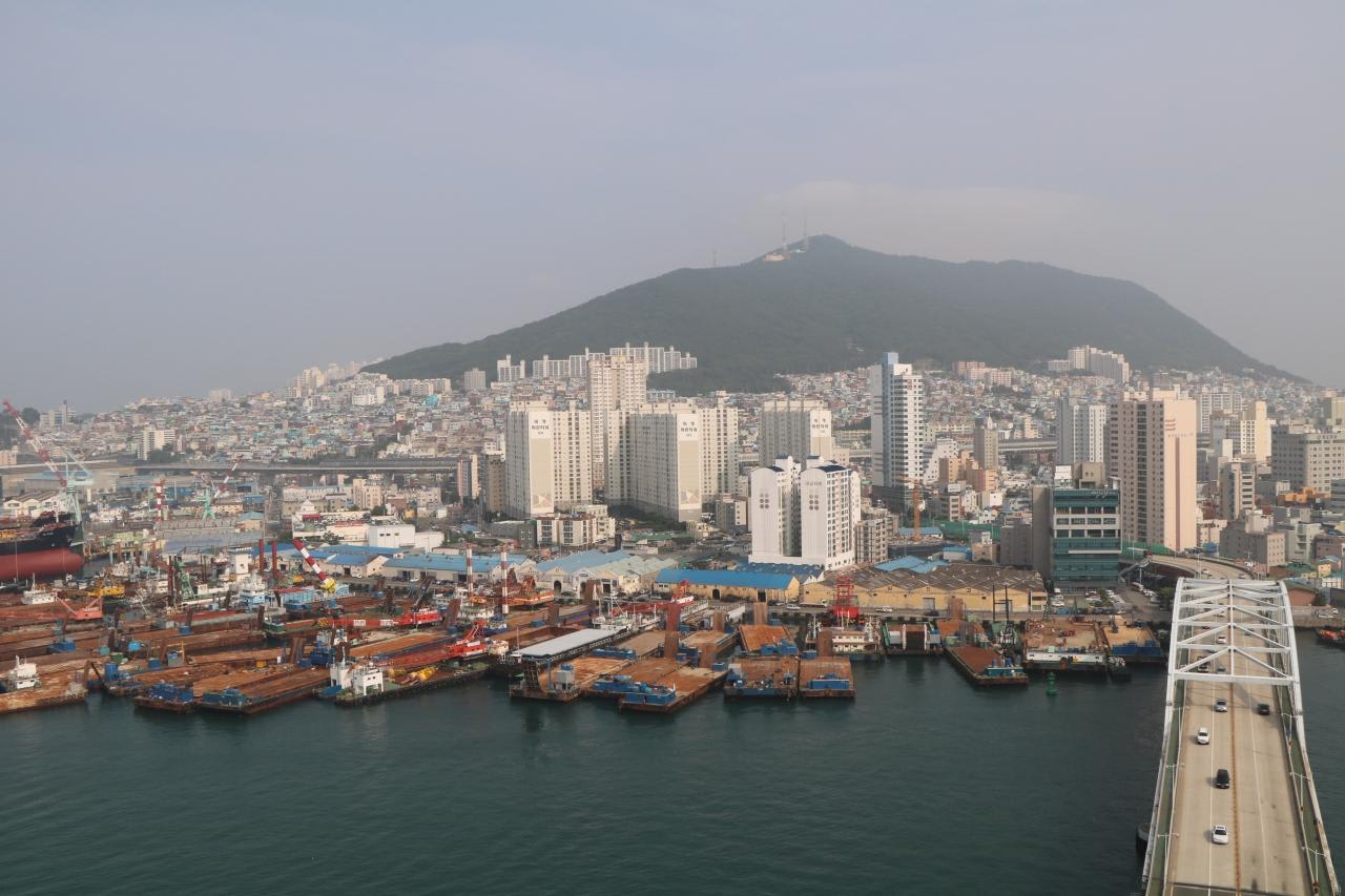 チヤガルチ市場から釜山南港と南港大橋を望む