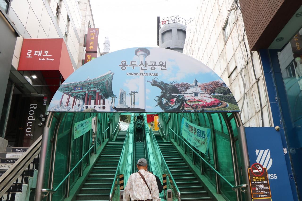 エスカレーターを乗り継ぎ龍頭山公園へ