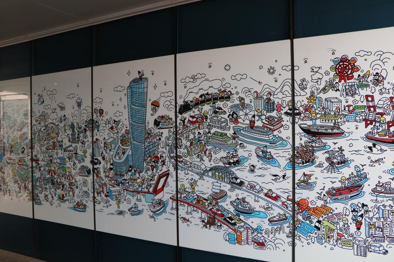 屋上に掲示されている楽しいイラスト