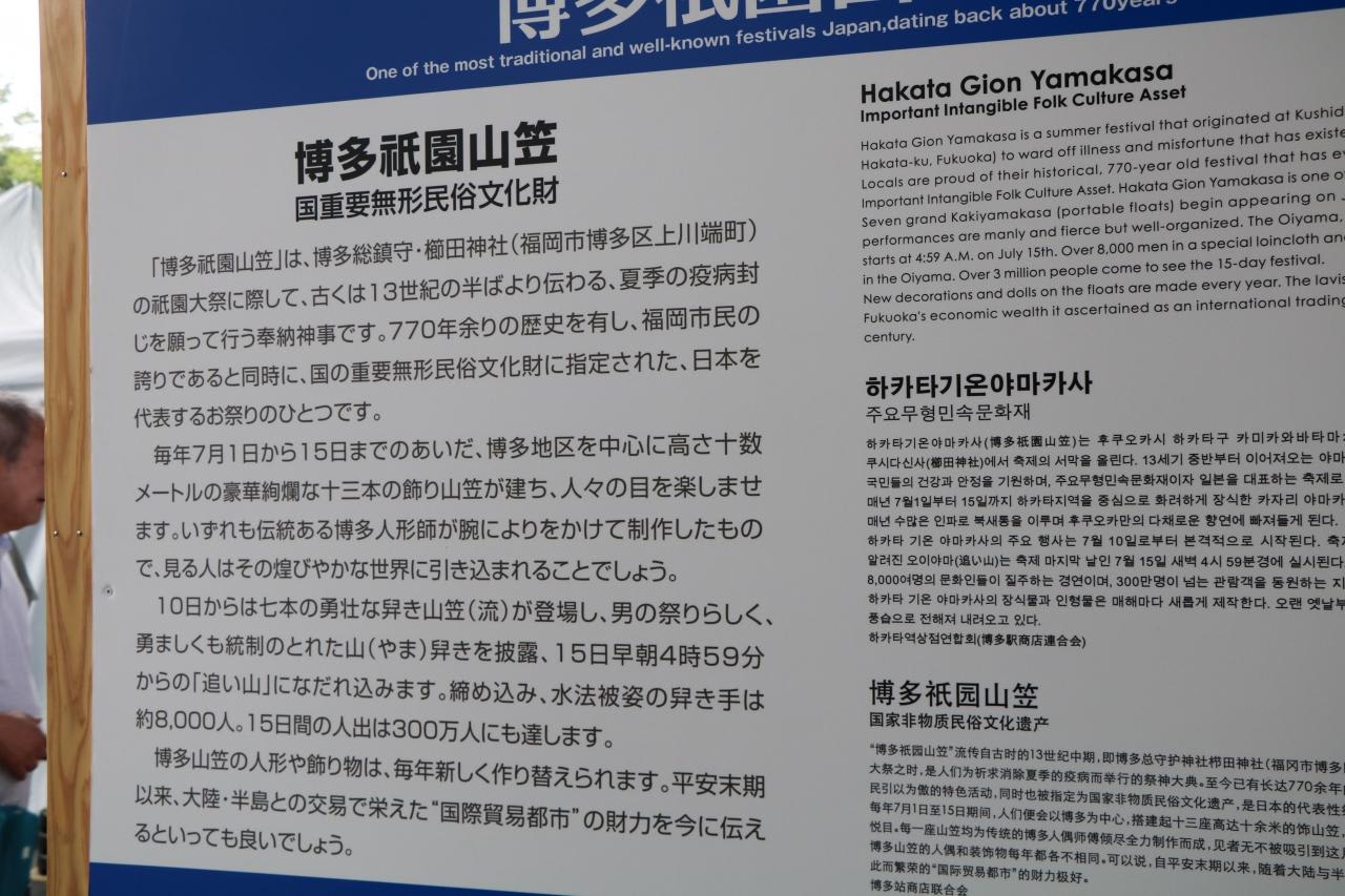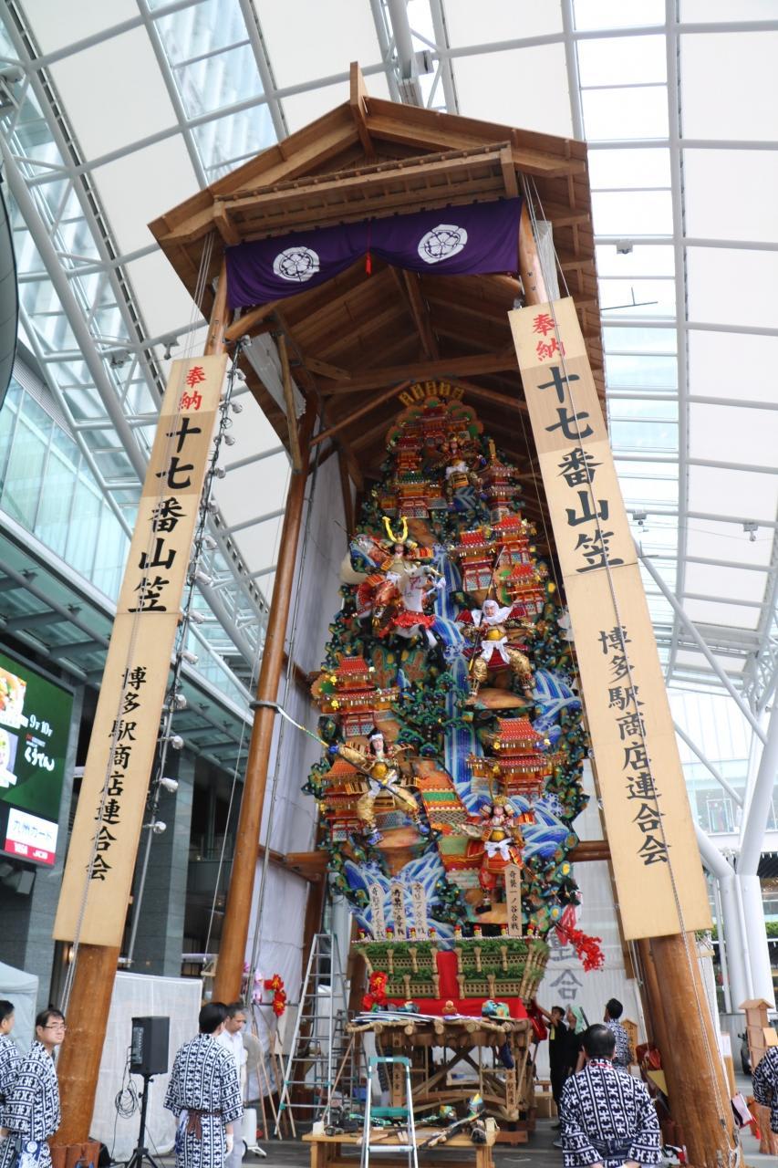博多駅前には伝統行事・博多祇園山笠が7月1日から始まると言う事で豪華絢爛な飾り山笠が勇壮に立っていました。