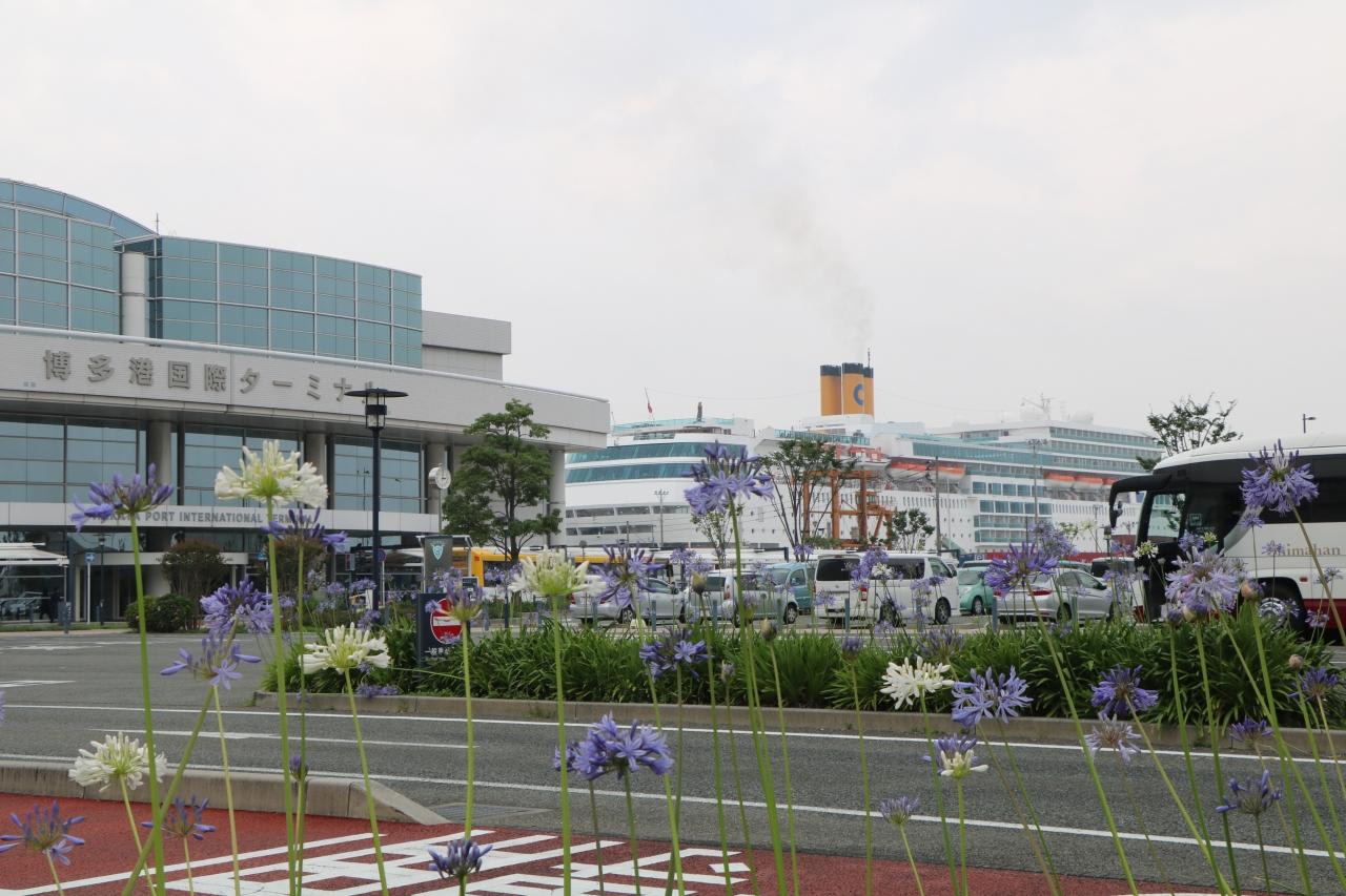 コスタネオロマンチカは5つ目の寄港地博多港に午前8時に入港しました。