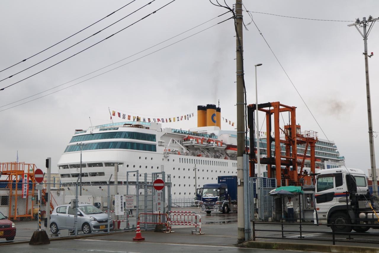 金沢港同様に保税地域にあり、コンテナが邪魔してコスタネオロマンチカの全景を撮れず残念。