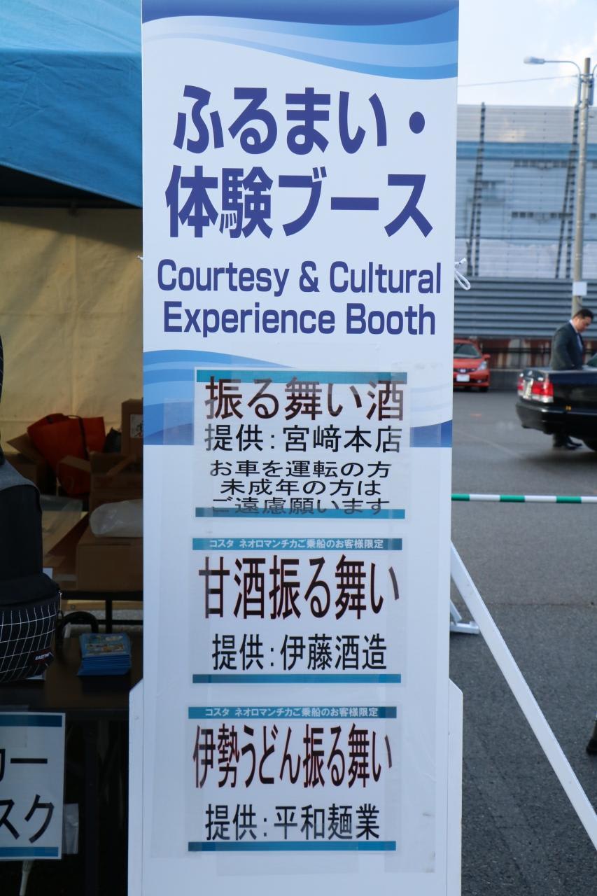 観光振興のため、四日市港に客船の誘致を図り、地域の活性化に寄与することを目的に四日市客船誘致協議会により「四日市港クルーズファンクラブ」が設立されており、コーナーでは乗船客や乗組員へのおもてなし活動がされていました。http://www.yokkaichi-cci.or.jp/cruise/news/359/