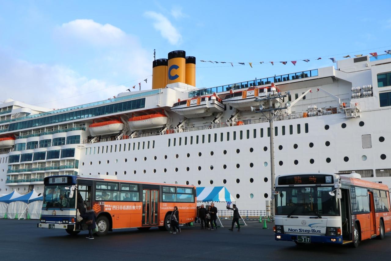 今回のクルーズでは悪天候の影響で神戸、奄美大島は抜港し航程変更となり、四日市港への入港時間は午前6時30分から午前1時に早まったりとスケジュール通りには運航できていないようです。