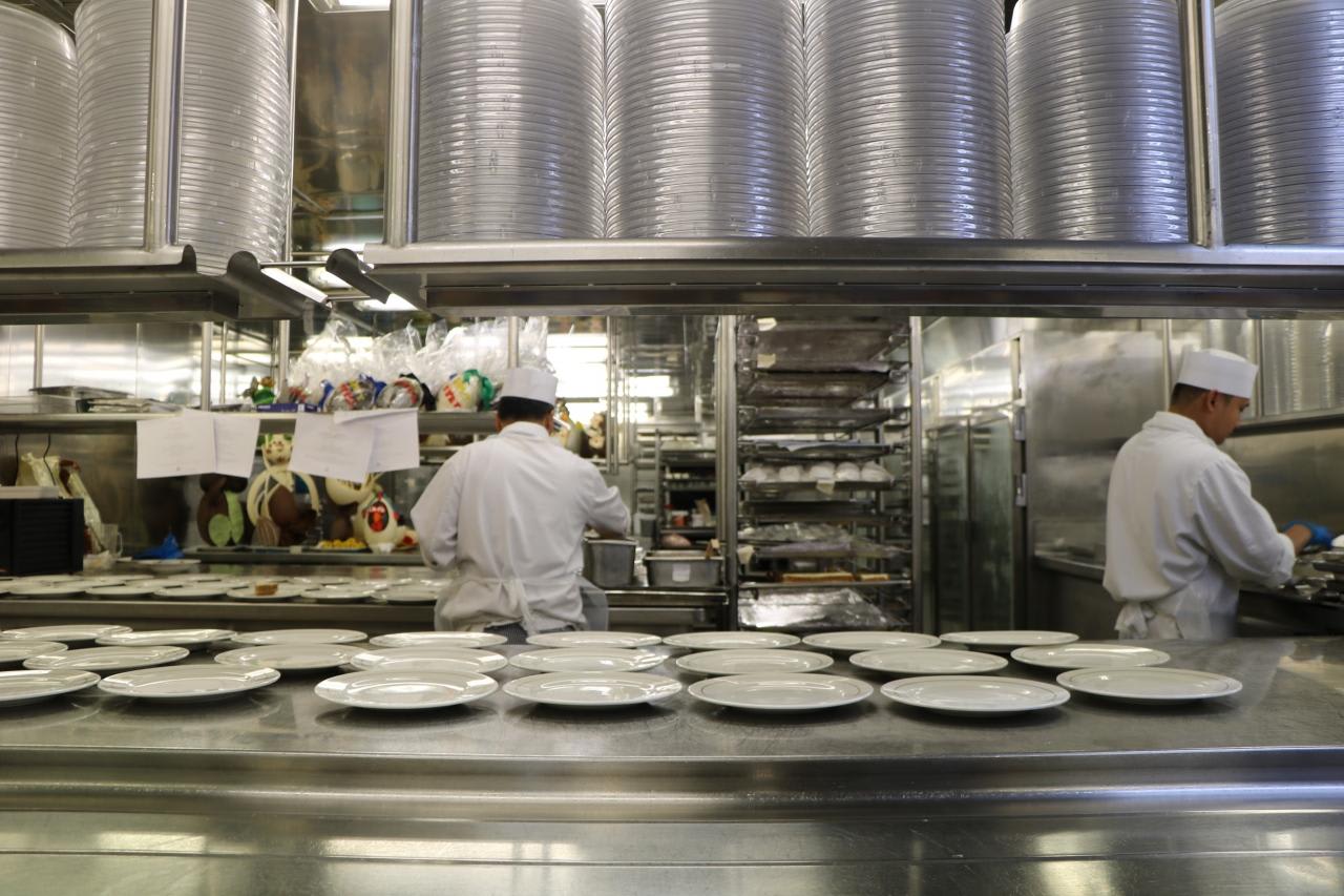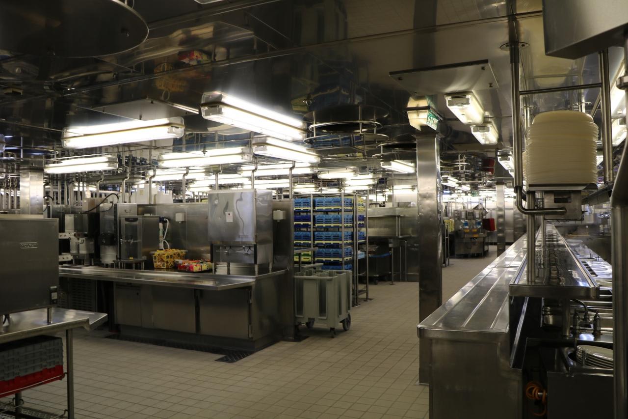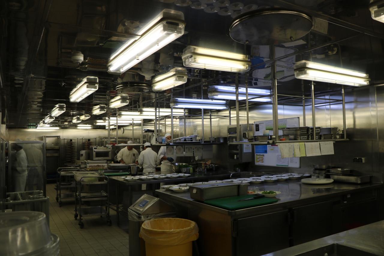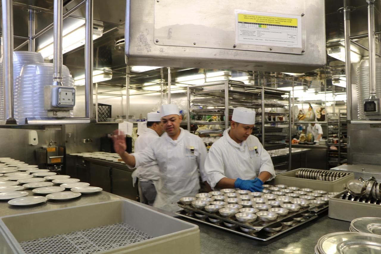 日本人ホステス山本さんが希望者に厨房見学ツアーをしてくれました。(前日夜に配布されたチケットを持っている人限定)