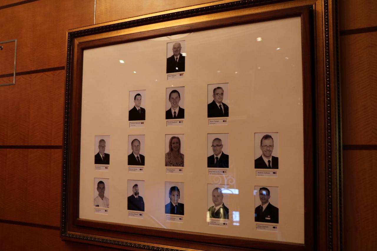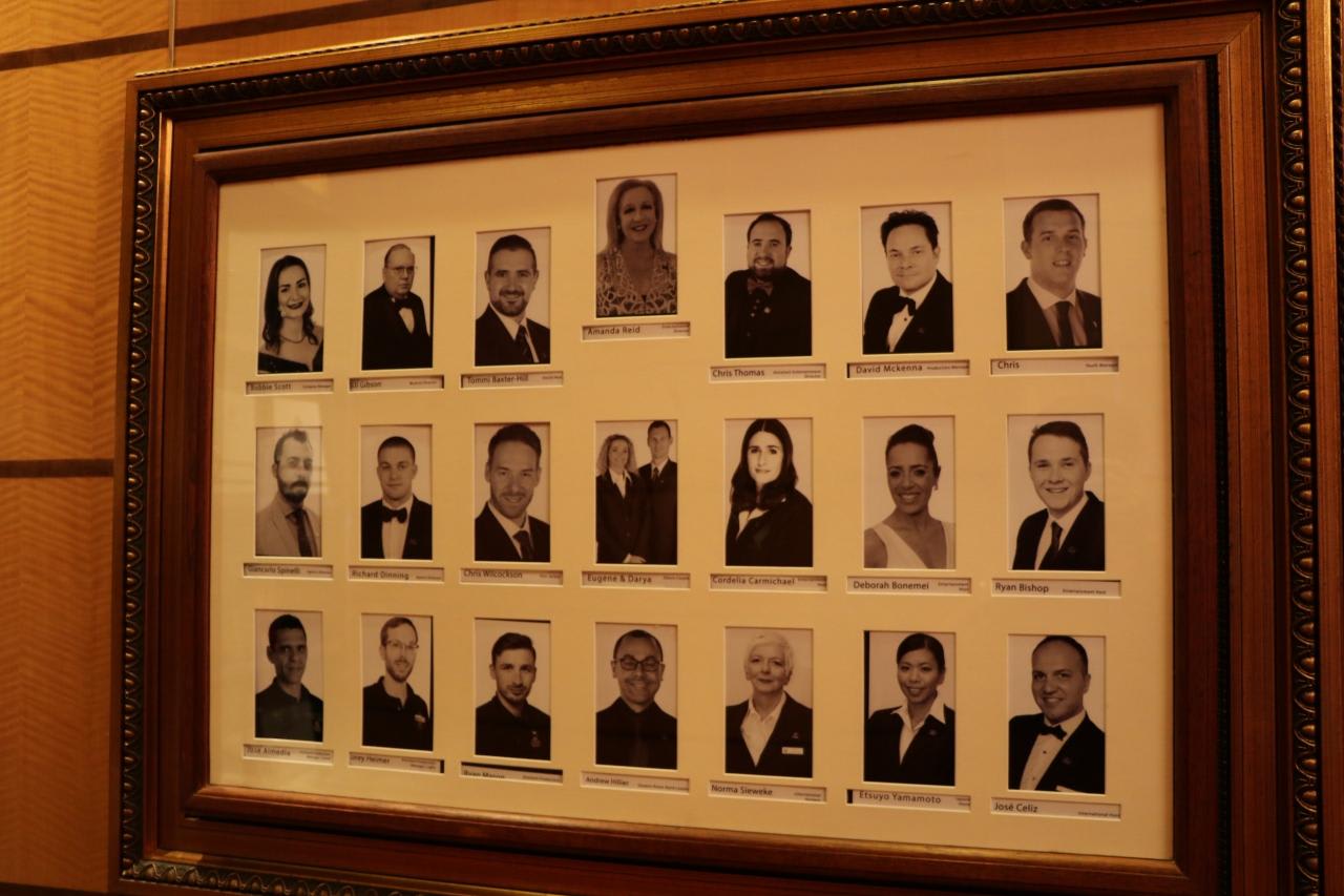 船長が筆頭の高級オフィサー紹介写真キュナードではクルーとスタッフとオフィサーの階層が明確になっていると感じました。