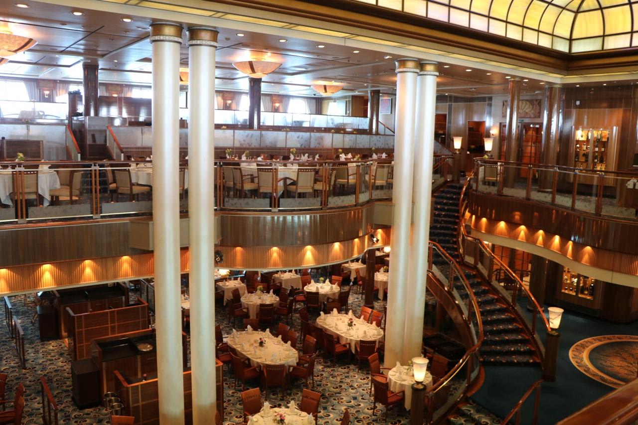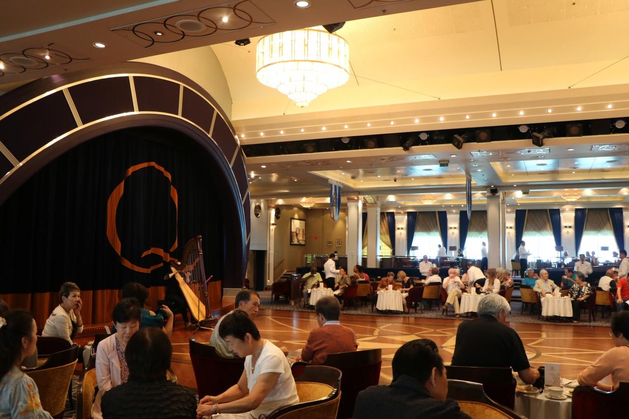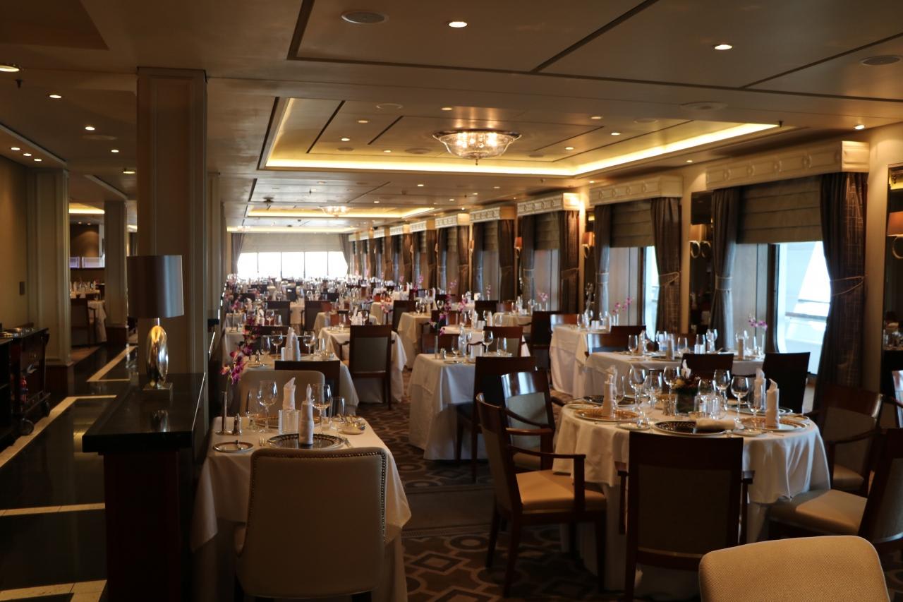 OFFの時間帯にちょっとお邪魔してQカテゴリー対象のクイーンズ・グリルをパチリ。最上級のQカテゴリーは部屋には専属のバトラー(執事)がつき、荷物の荷ほどきやパッキングなどをしてくれるらしい。