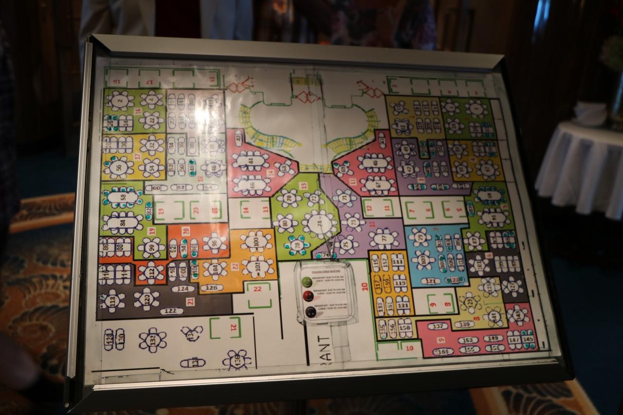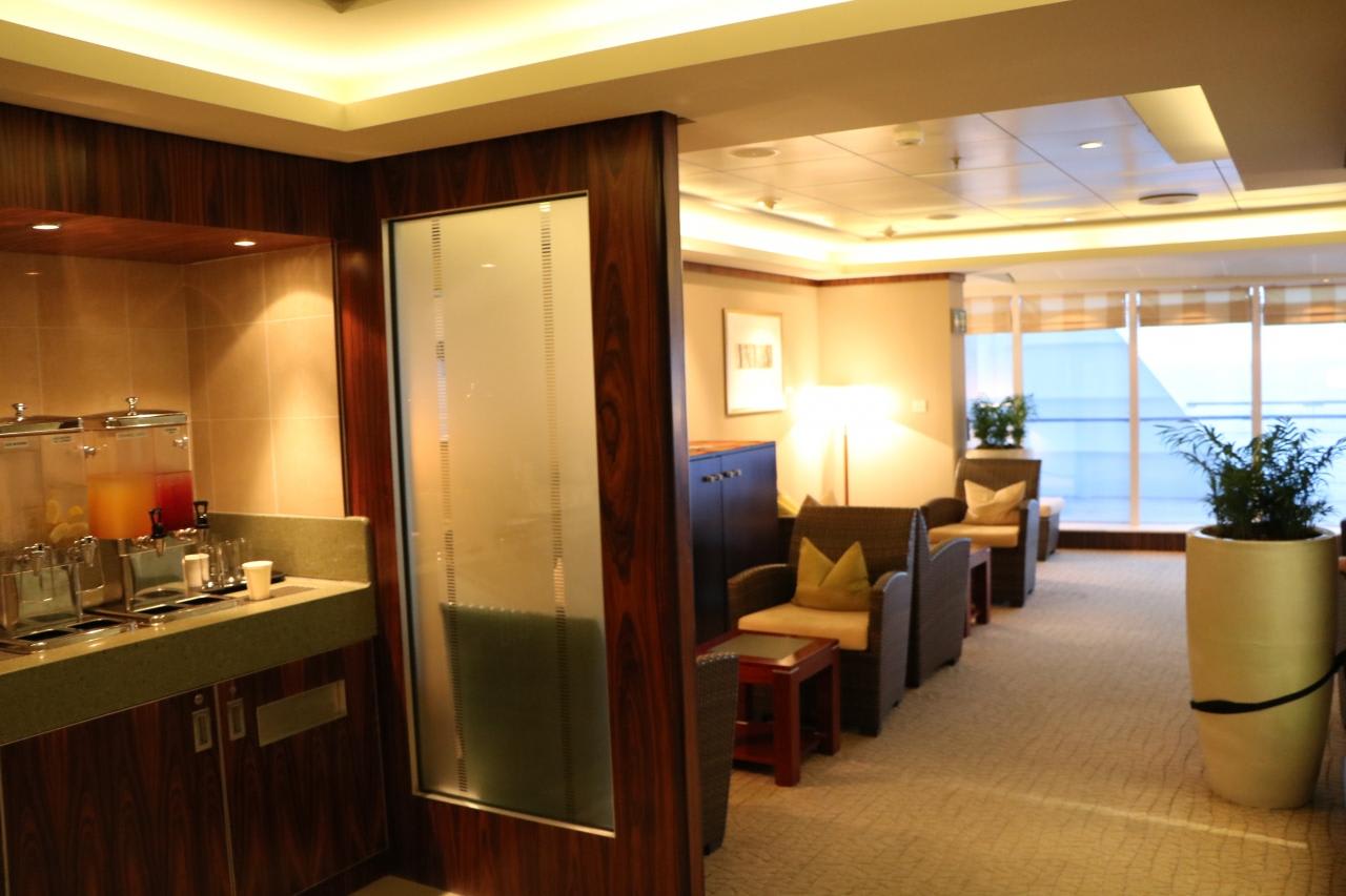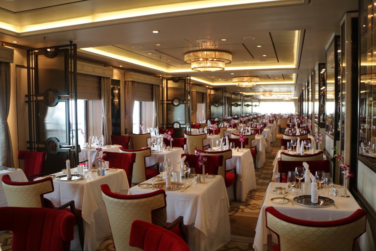 OFFの時間帯にちょっとお邪魔してQカテゴリー対象のクイーンズ・グリルをパチリ。最上級のQカテゴリーは部屋には専属のバトラー(執事)がつき、荷物の荷ほどきやパッキングなどをしてくれるらしい。
