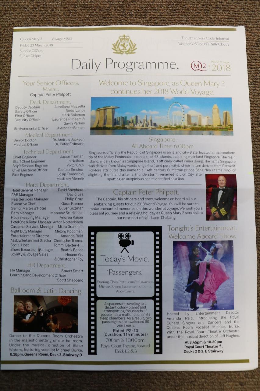クイーンメリー2で行く東南アジア周遊クルーズ10日間の旅③QM2船内