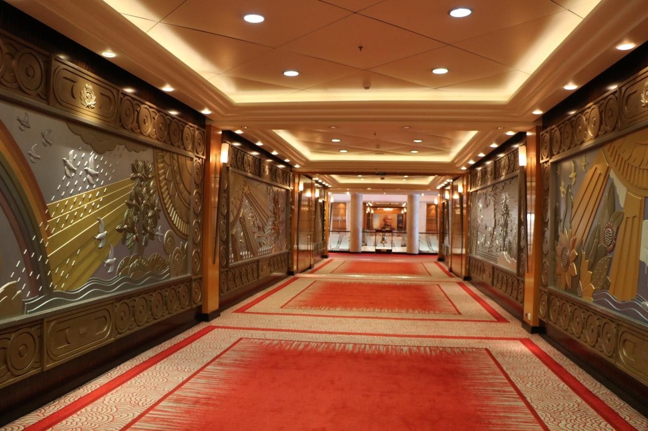デッキ2のグランドロビーに通じる広々としたプロムナード
