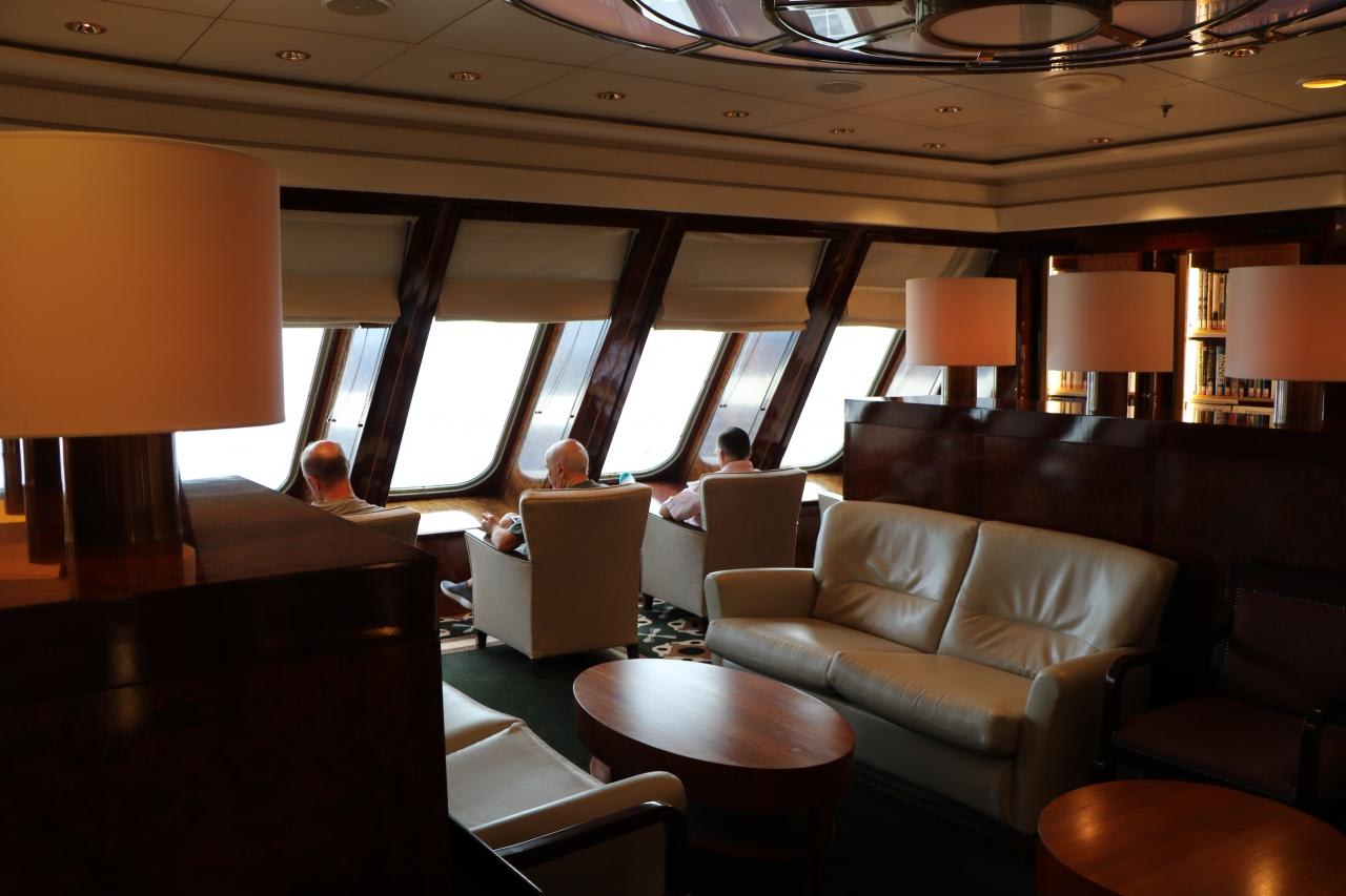 図書室前方に設けられ視界良好の椅子席。ここはキャビンと同じフロアにあり、お気に入りの場所です。