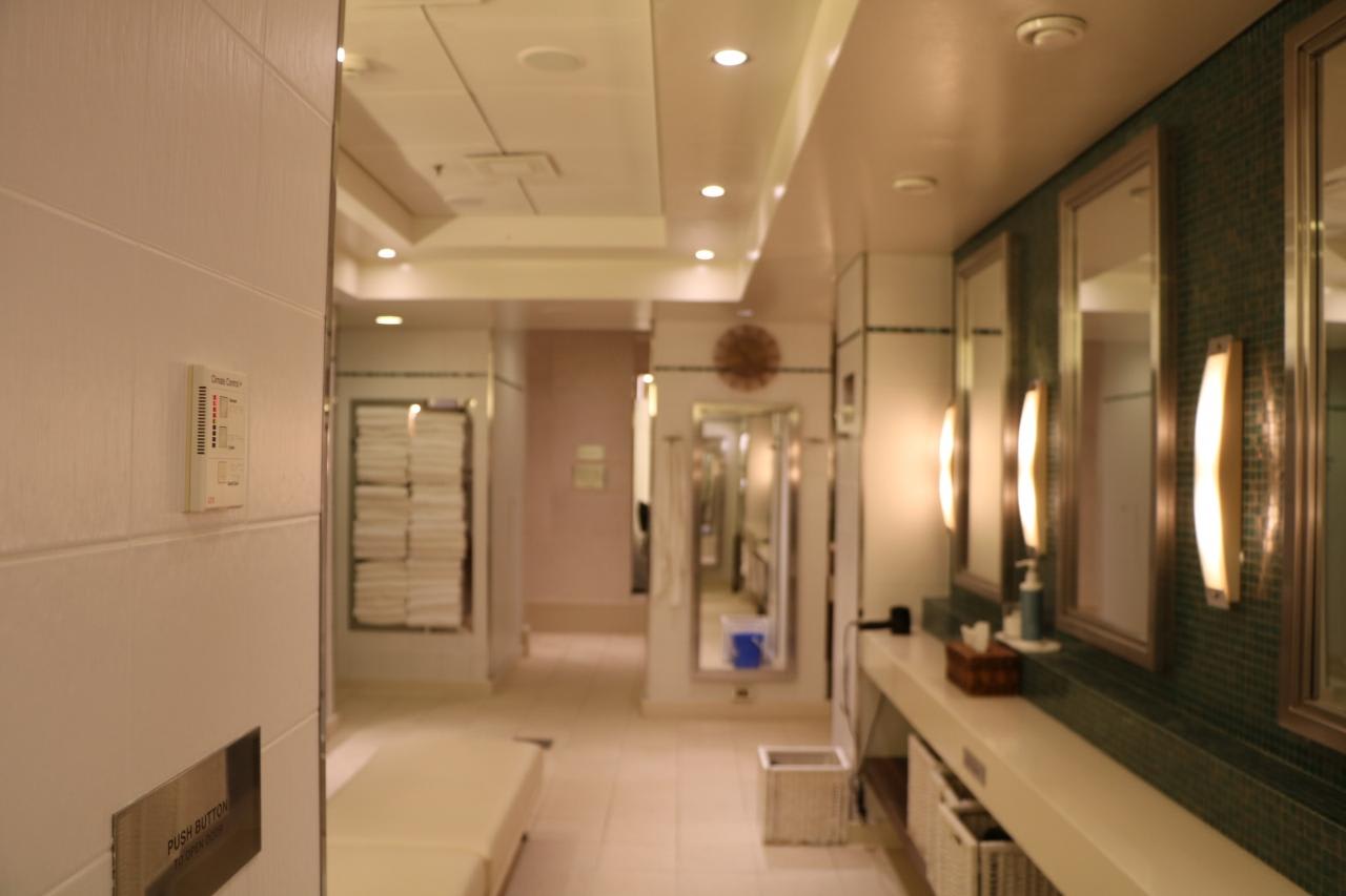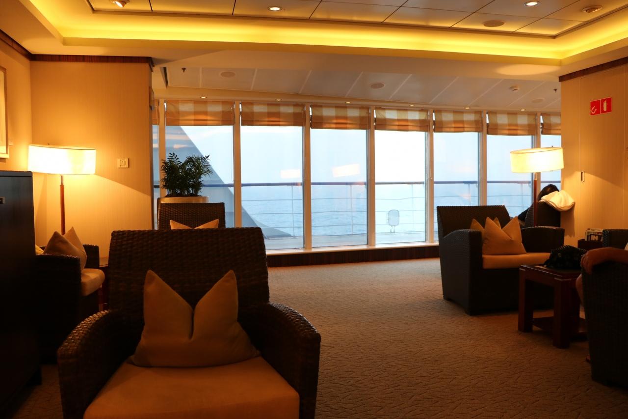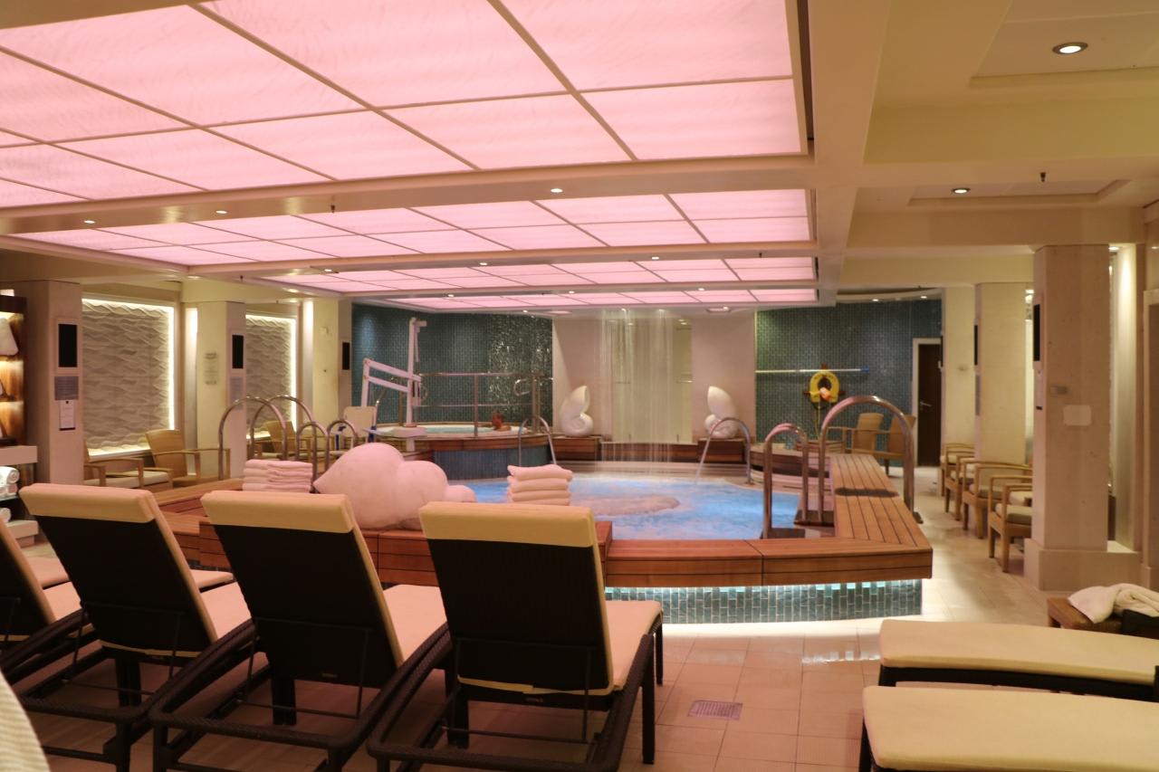 右舷側の海を眺めながら寛げるリラックスラウンジスパクラブ利用券を購入して利用(1日券40$、3日券75$、6日券105$)。試しにプールとリラックスラウンジを利用しましたが、1日券40$支払う程の価値は感じられませんでした。マッサージやトリートメントを利用すれば無料で利用可能。