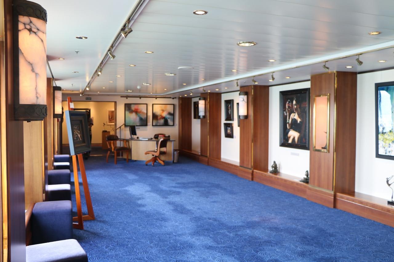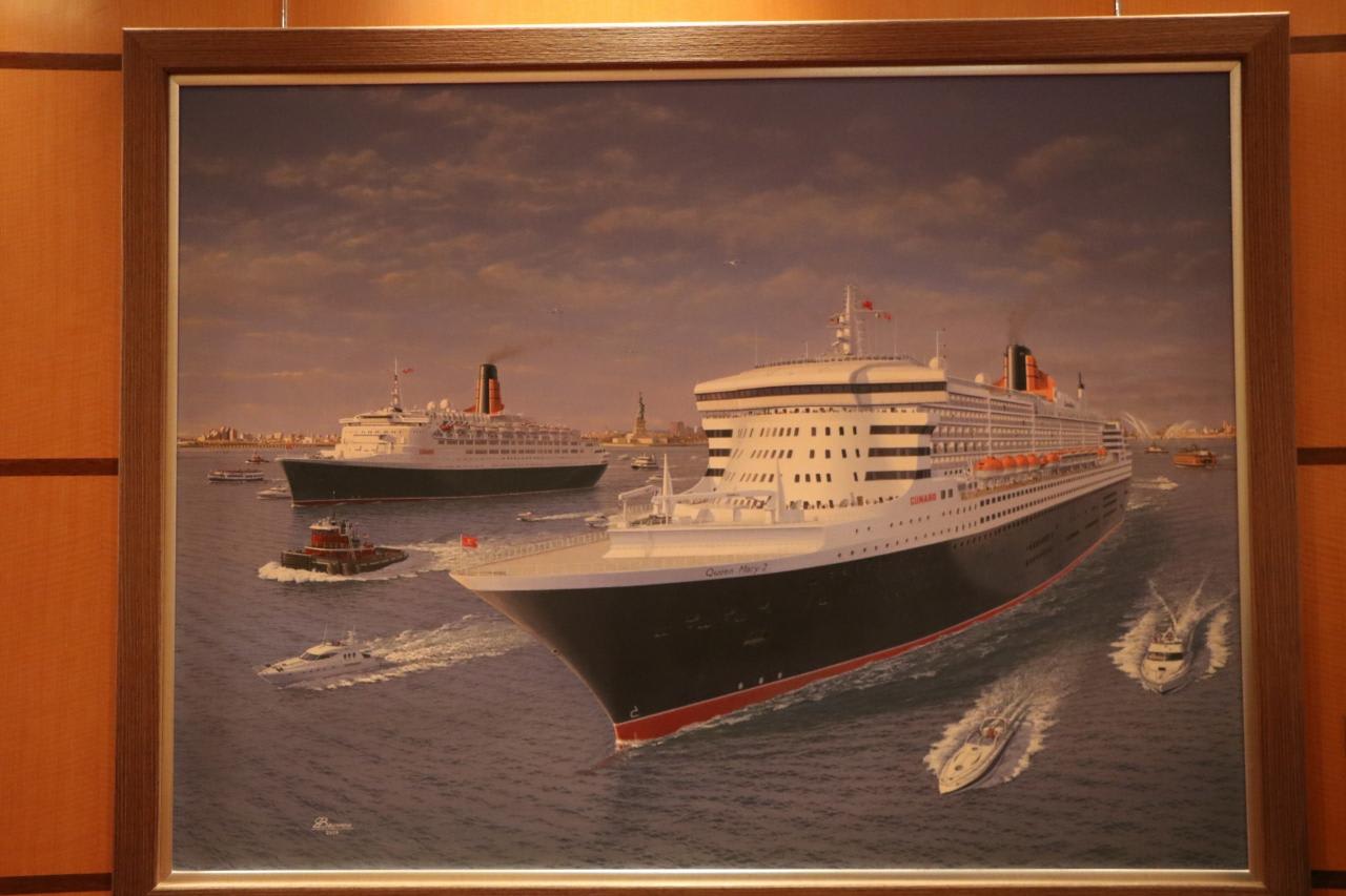 BOOK SHOPと客室の間にあるQM2の絵画コーナー