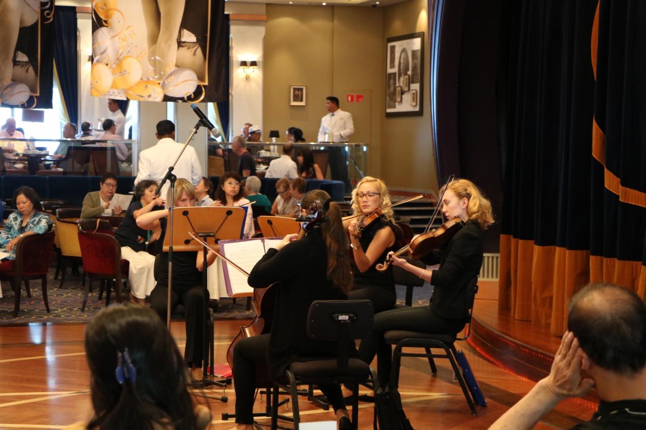 この日のアフタヌーンティーではバイオリン奏者4人がポピュラー音楽を演奏