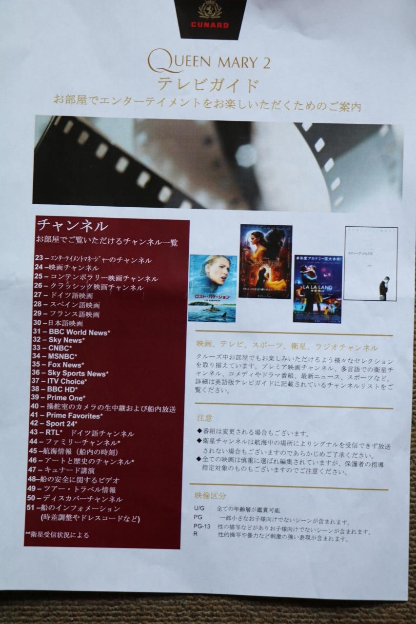 キャビンで見れるテレビガイド日本語映画も用意されていましたが、専ら操舵室からのカメラ生中継や船の現在場所が分かる航海情報を見ていました。