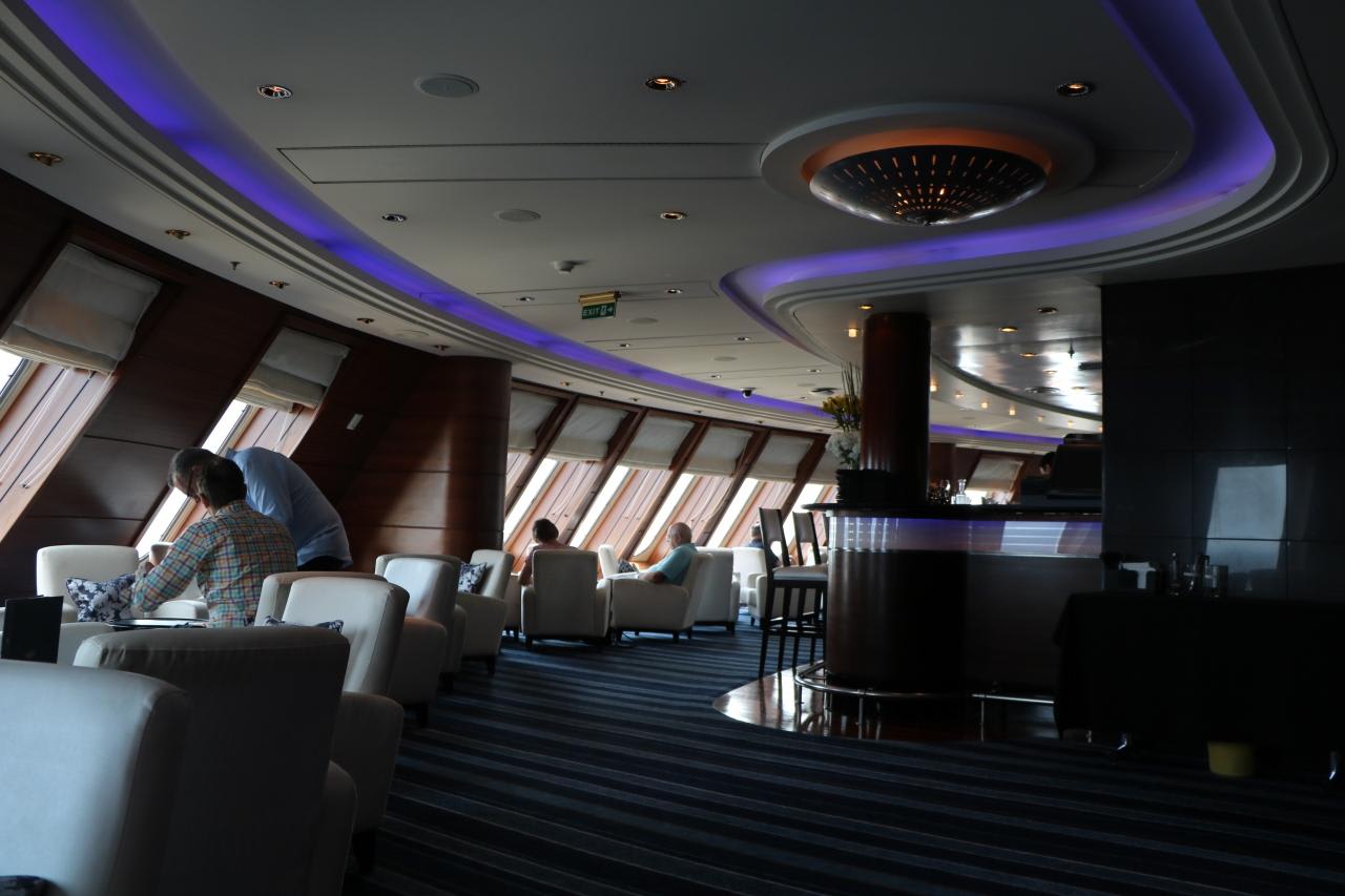 デッキ9船首にあるコモドアクラブ進行方向前方の景色をゆったりと楽しめます