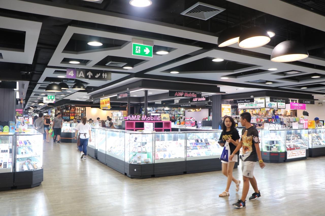 MBKセンター4階は携帯電話ショップがメイン。バンコクもスマホが主流のようです。タイで使うSIMフリー携帯を買うならここへ来たら良さそう