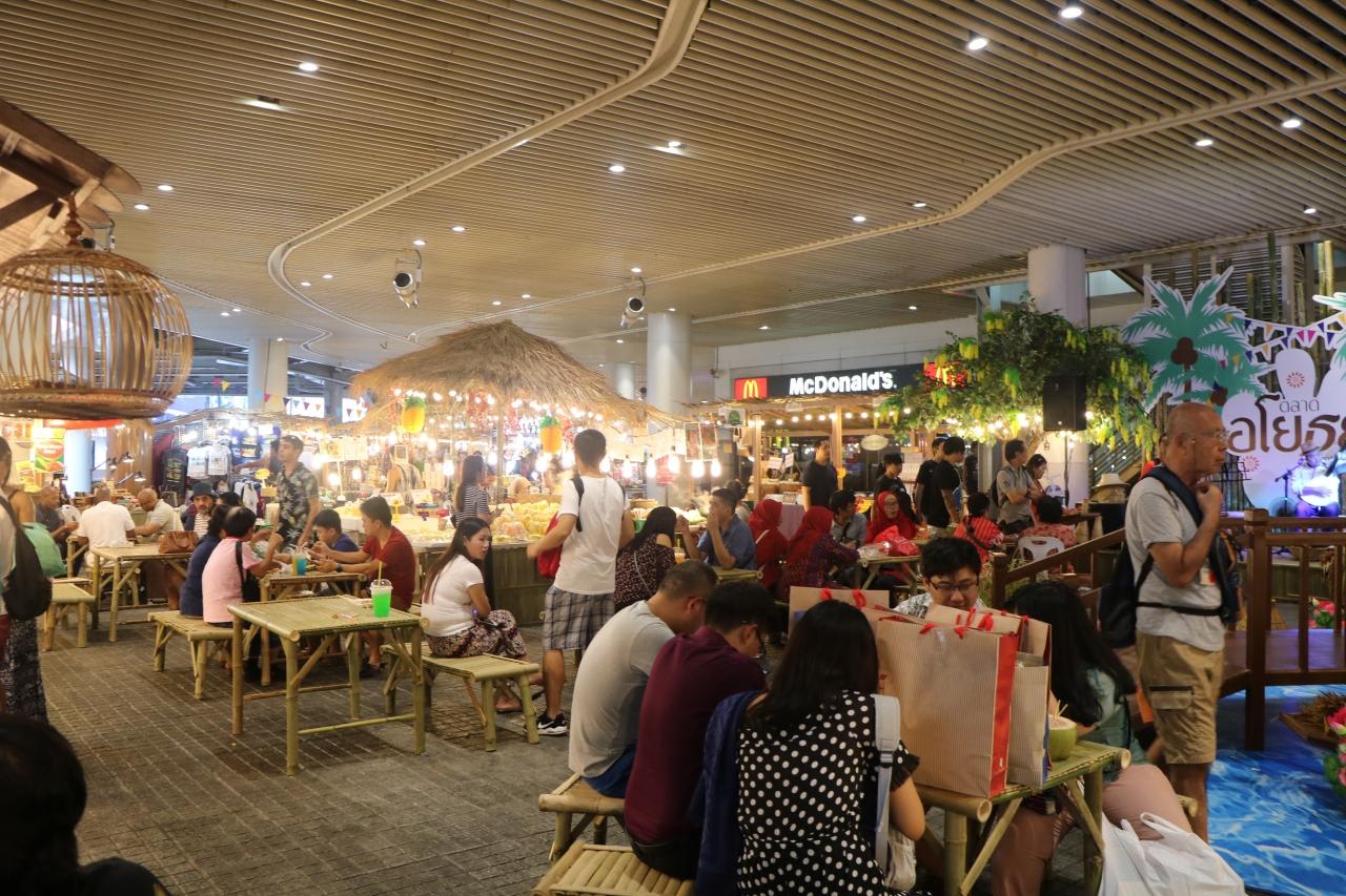 王宮観光した後、暑い日差しの中を歩いたので疲れてお腹もペコペコ。午後1時半過ぎから昼食の店探しです。何を食べようかとショッピングセンター内のフードコートを探した結果、地元の人しか入っていないような店でランチする事にしました。