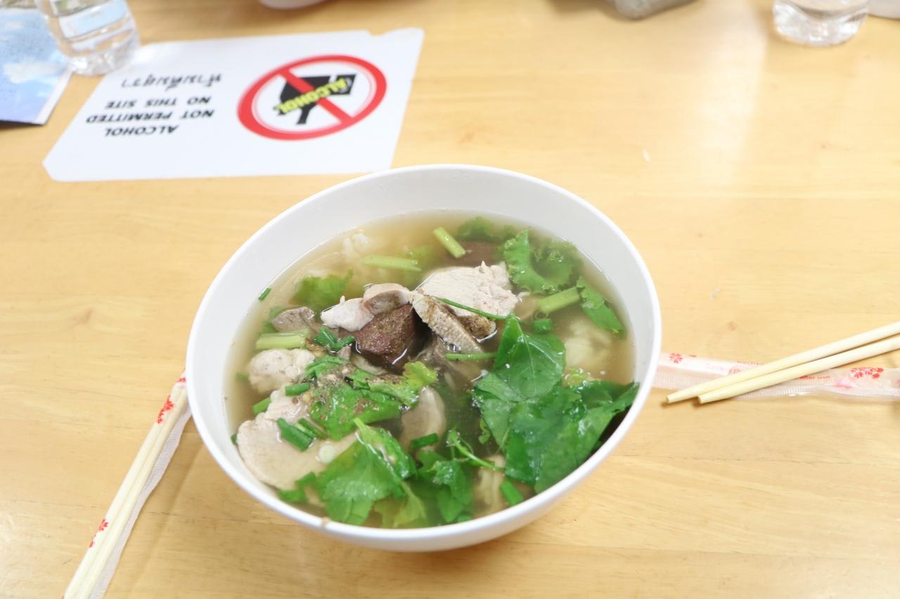 上記の料理だけでは物足りないので肝の入ったタイ スタイル クリアスープというスープ(50B・約170円)を食べました。