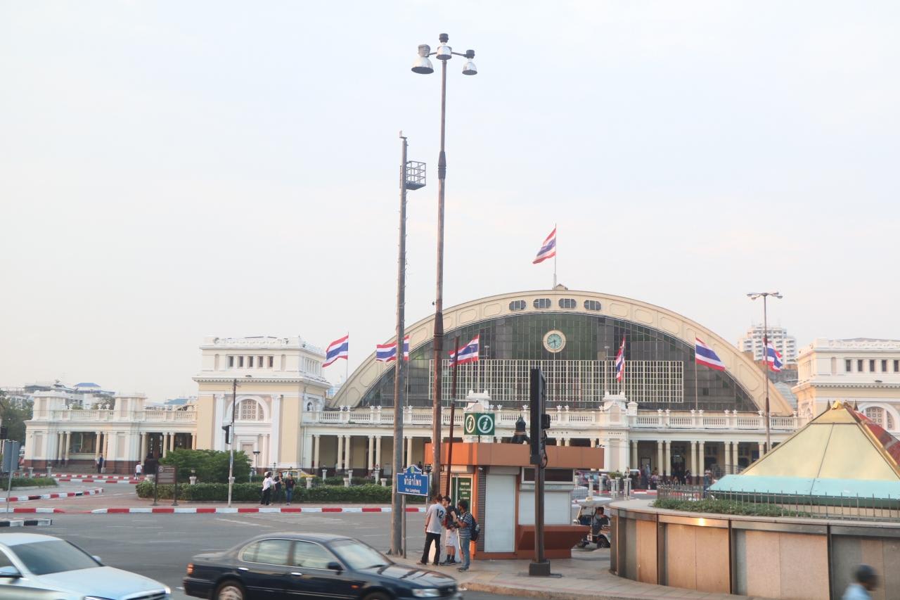 車窓から見かけたタイ国有鉄道の駅舎レムチャバン港とバンコク間は往復5時間かかり、バンコク市内観光できたのは4時間位。バンコクに港があり入港していたらもっと観光できるでしょうが、地の利が悪く事前に下調べもしていなかったので満足な観光は出来ませんでした。