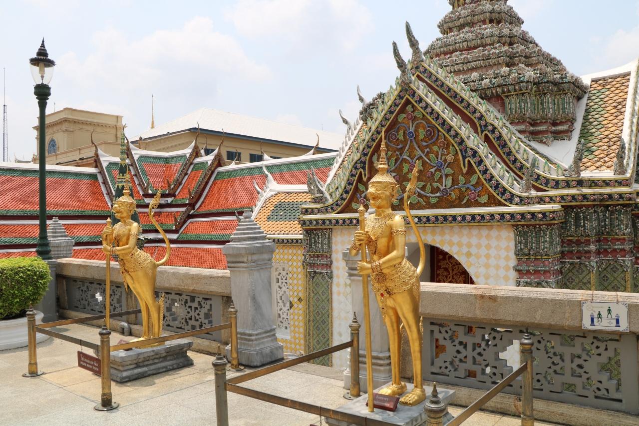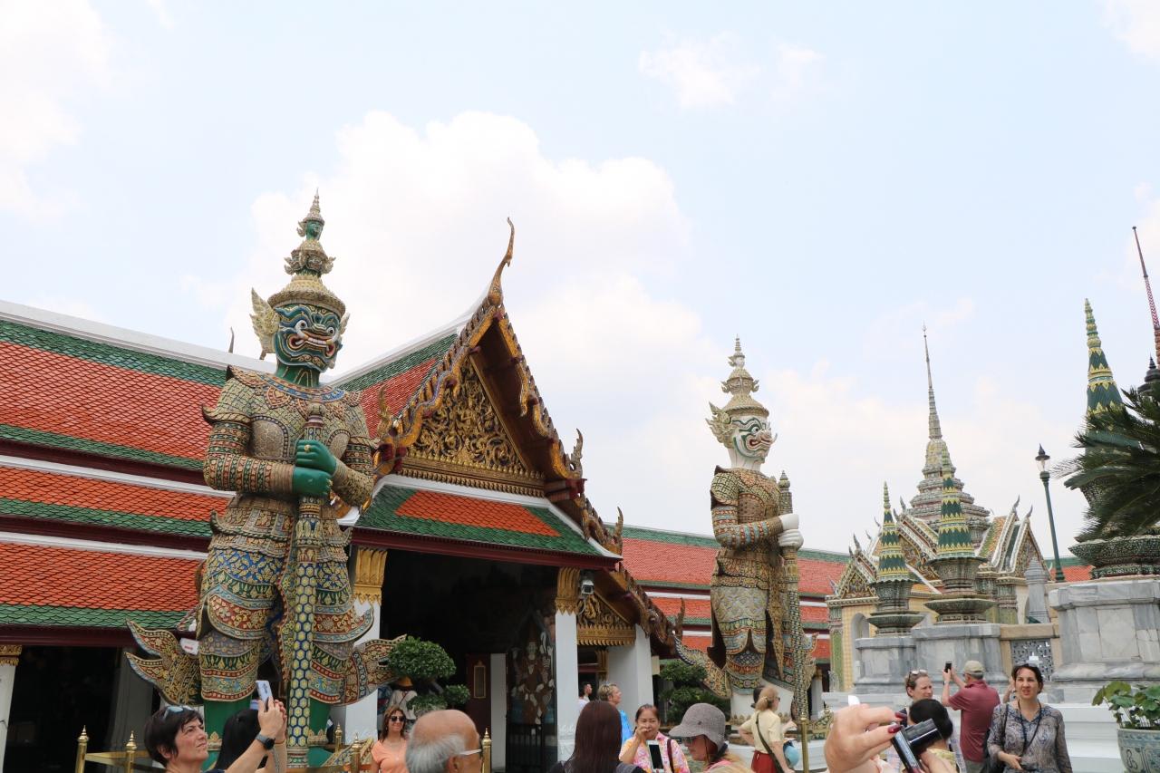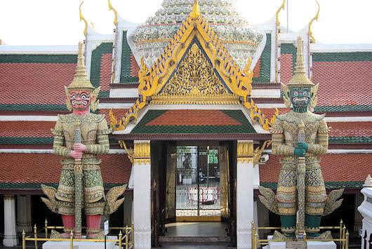 エメラルド寺院(ワット・プラケオ)を取り囲む回廊には6つの門があり、この門の前に立っている像は、「ラマキエン」に登場する鬼で、人肉を好物としているとされているとの事。
