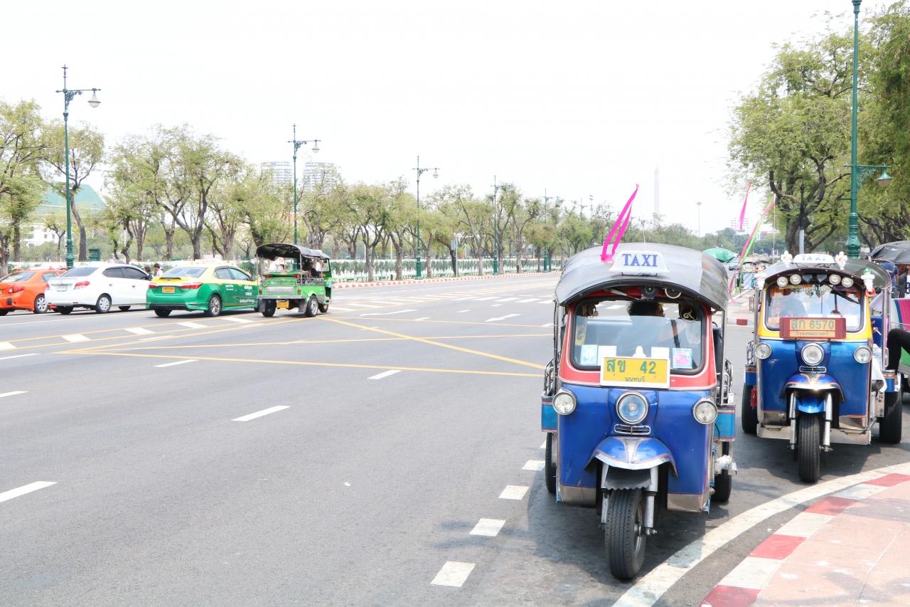 タイ名物の3輪車タクシー(トウクトウク)が活躍。