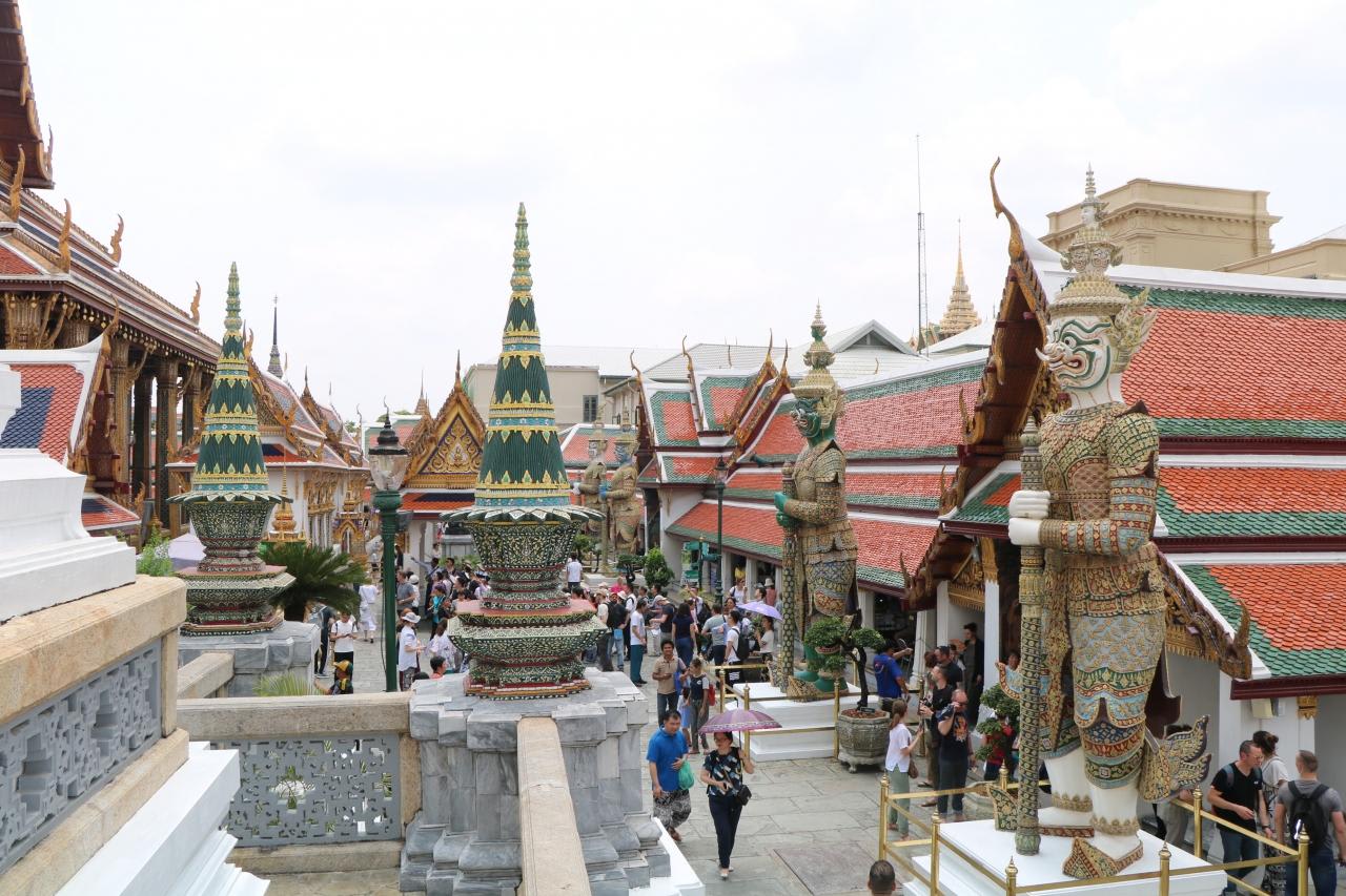 エメラルドの仏像が安置されている本堂内は写真撮影禁止。王宮敷地内では撮影OKで観光客はここぞとばかり写真撮影