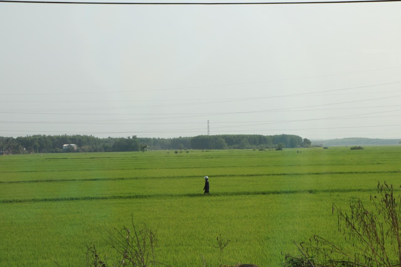車窓から見えたメコン川沿いの水田が広がる青々とした田園地帯。ベトナムは世界有数の米輸出国なのでこの辺りは二期作とか三期作でしょうか?