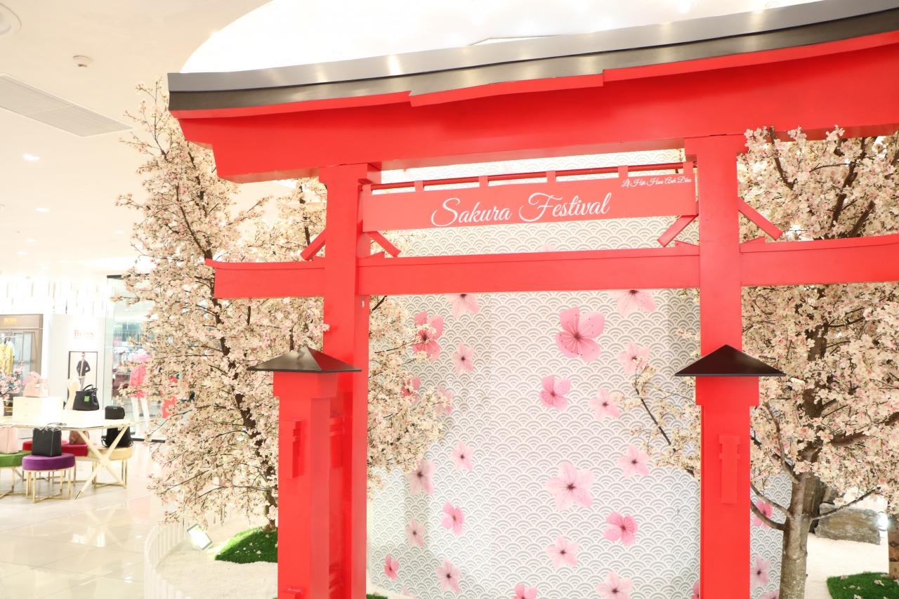 エスカレーターで昇って行ったら「サクラ・フェスティバル」と表示した赤い鳥居の一角があり、汗が引くまで休憩しました。