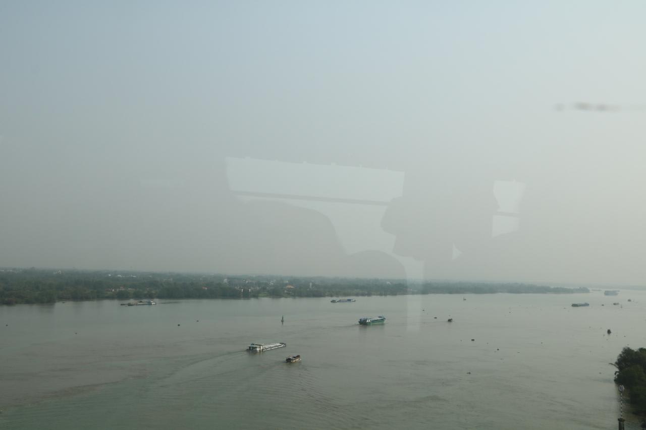 車窓から見た東南アジアでは最長の国際河川メコン川。メコン川は源流のチベットから5つの国を通ってベトナムに流れています。