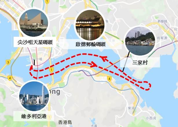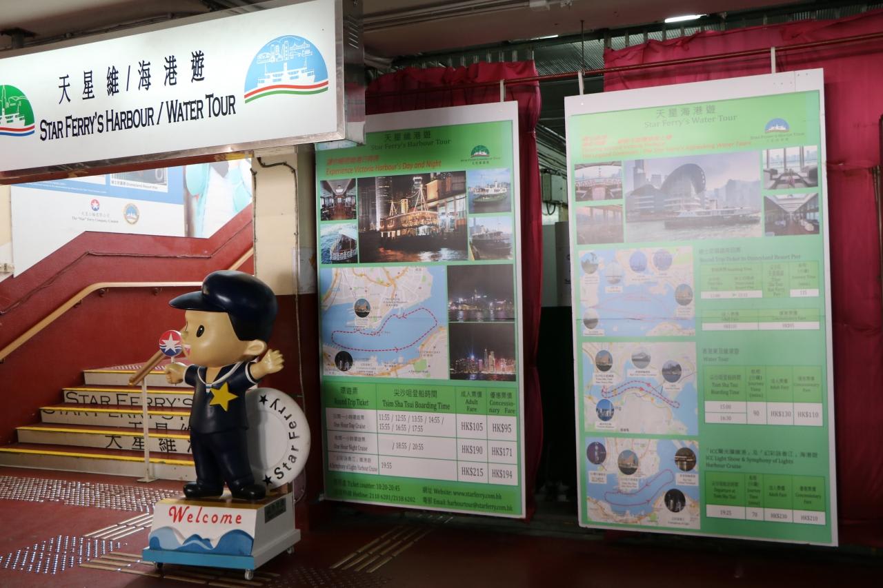 天星維海港遊という名称の遊覧船コース案内と乗船口