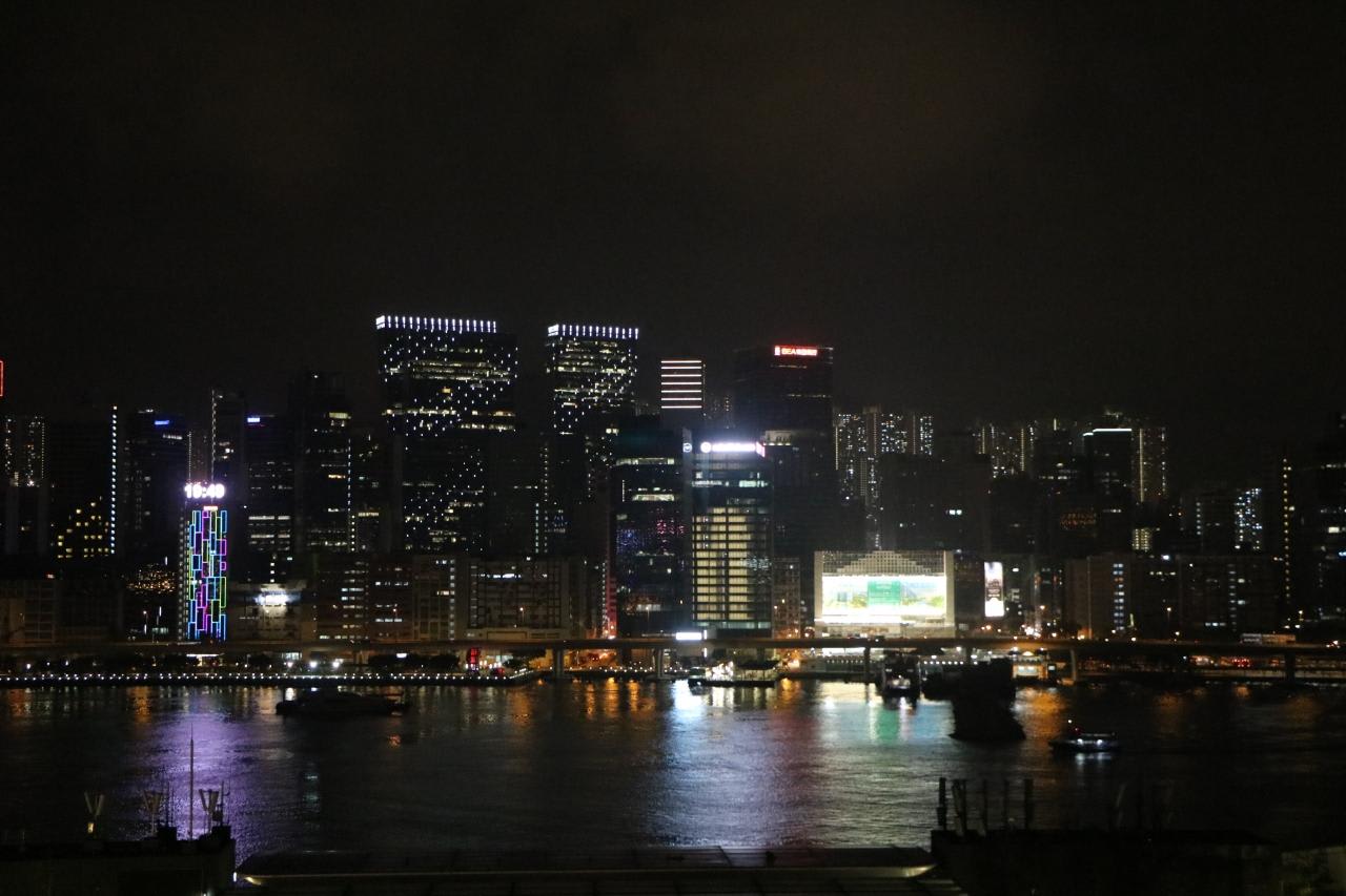 クイーンメリー2のデッキから見た香港の夜景
