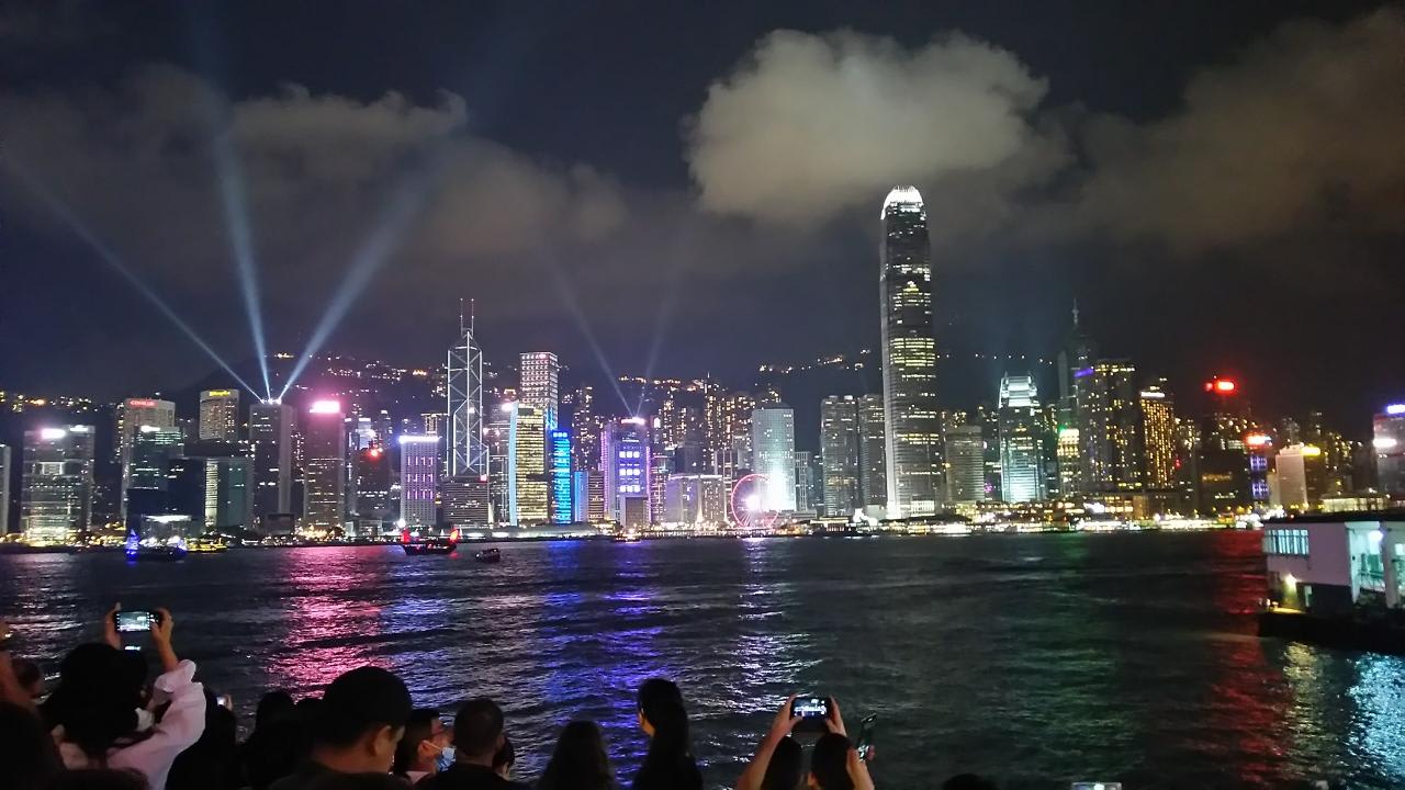 一緒にクルーズしたSさんは真面目に観光し、尖沙咀東部海浜公園でこんなに素敵な写真を撮って来ました。このシンフォニー・オブ・ライツはギネス世界記録でも「世界最大の永続的な光と音のショー」として認定されているらしい。