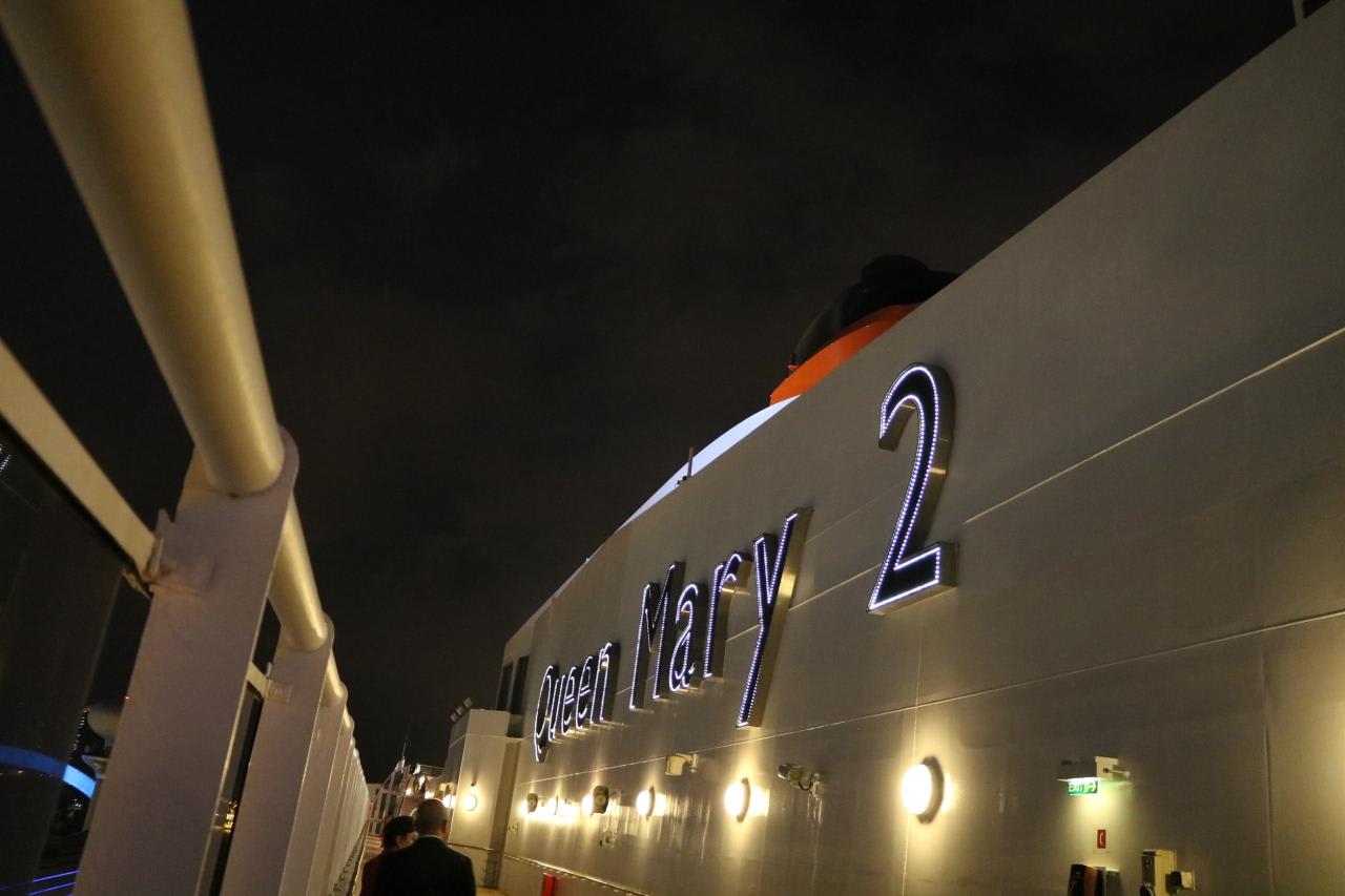 照明で映えるQueen Mary2の文字