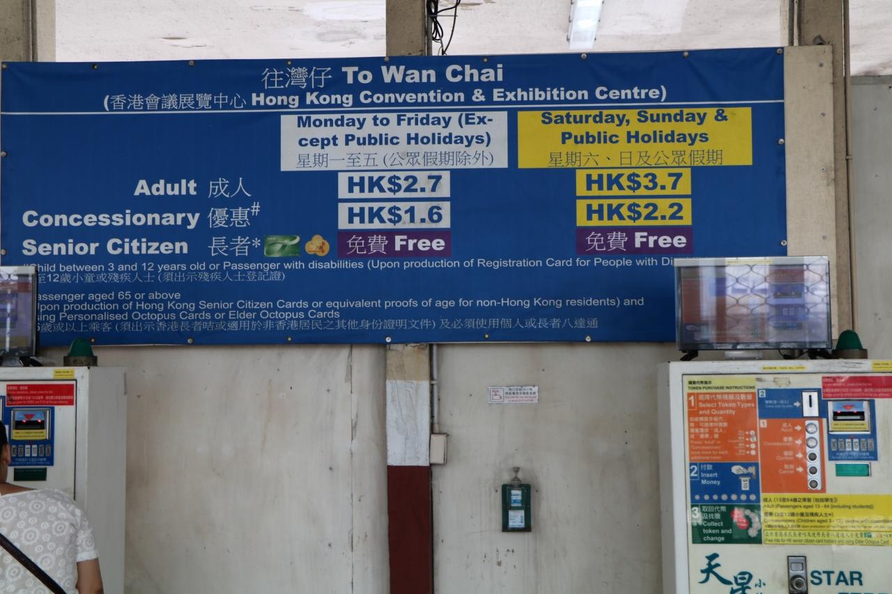 香港観光皮切りはスター・フェリーで九龍サイドから香港島サイドを往復。スター・フェリーの券売所当日は休日で尖沙咀~中環の運賃はたったの3.7HK$(約60円)。平日なら2.7HK$(約40円)