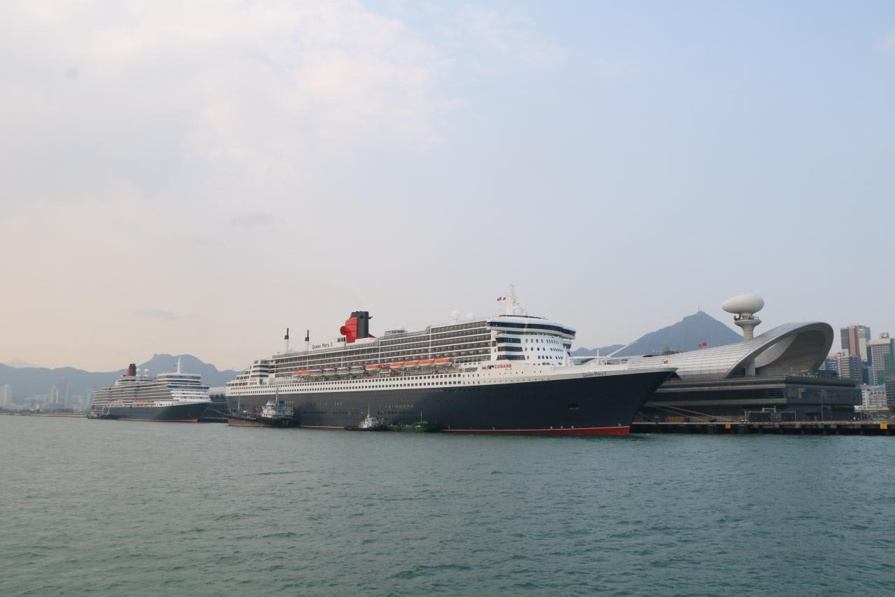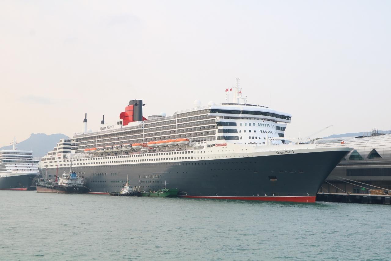 一般的には最終目的地についた日には下船するのが普通ですが、クイーンメリー2は世界一周をしている途中でもあり、翌日の31日まで乗船できました。お蔭で香港ではホテル宿泊する必要もなく、クイーンメリー2とクイーンエリザベスのランデブーの光景をたっぷり2日間鑑賞する事ができました。