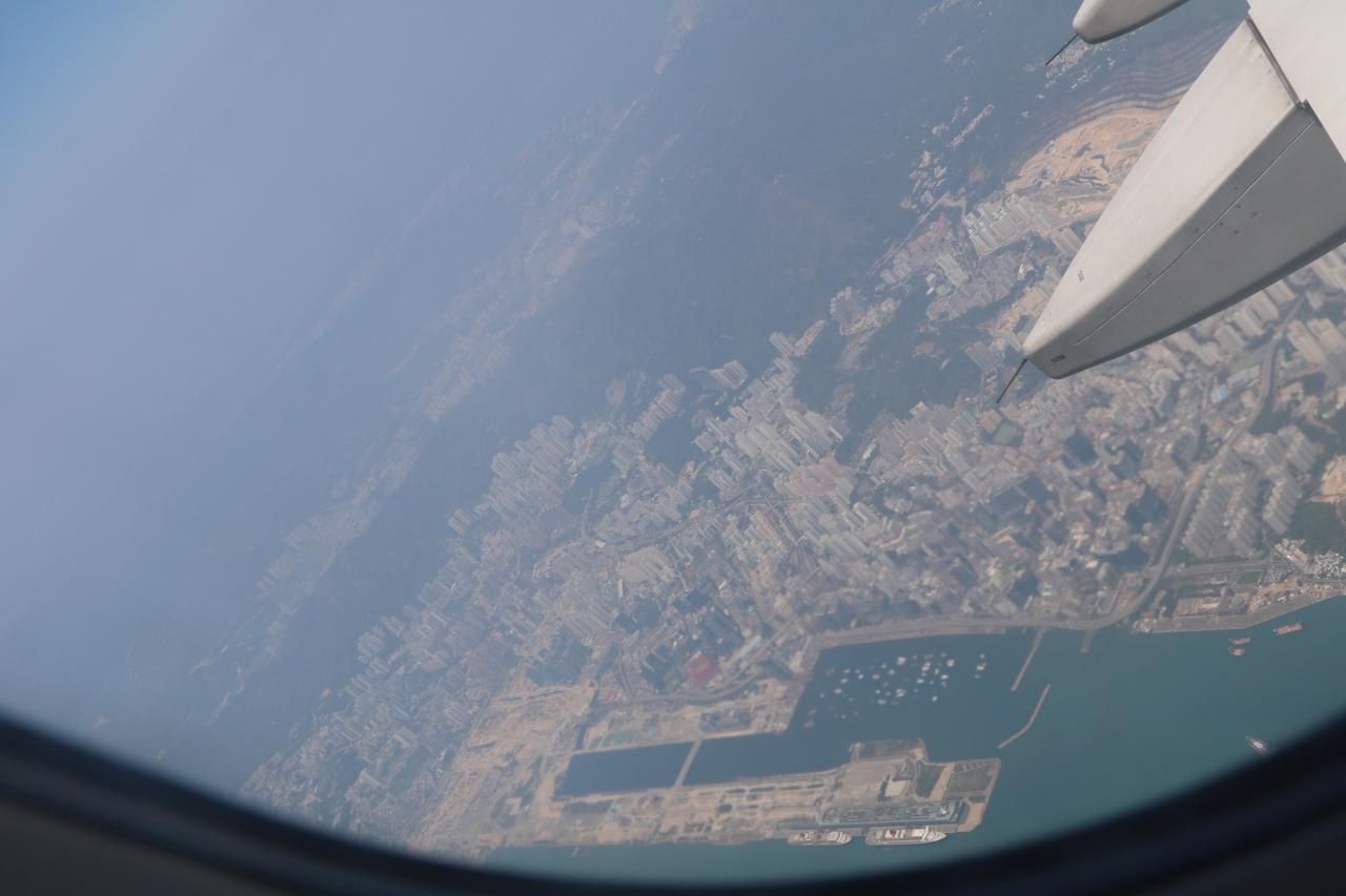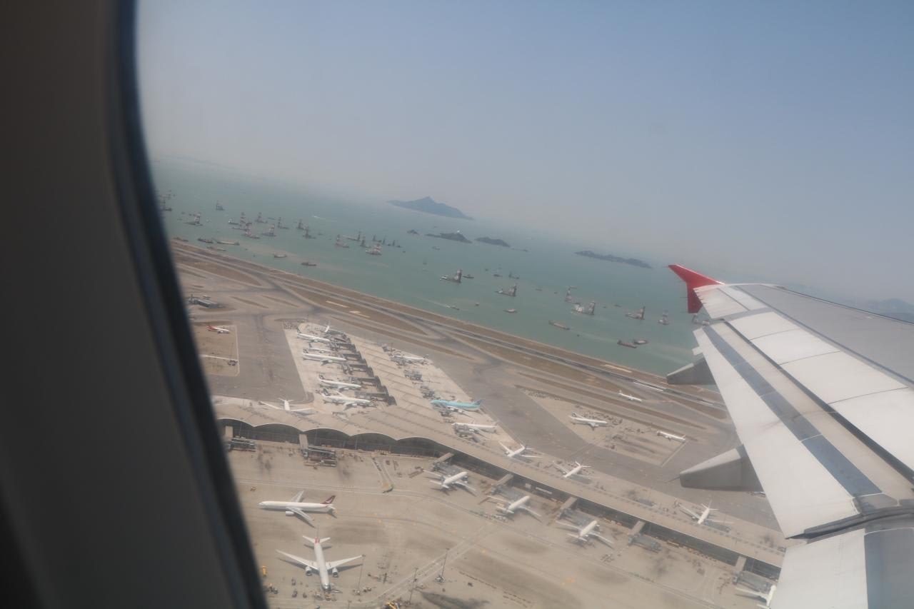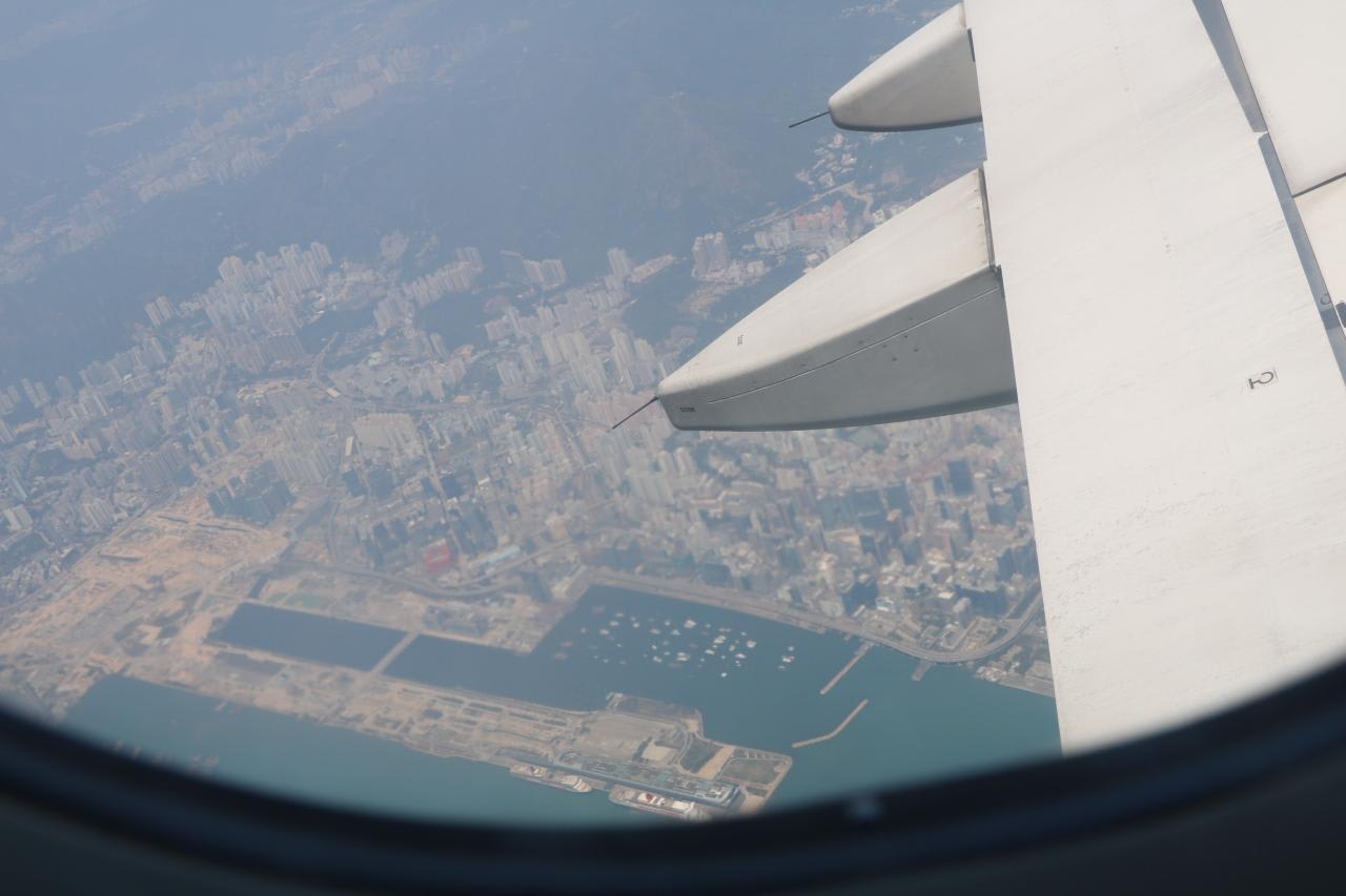 定刻時間より30分近く遅れて離陸し、香港とも お別れ!