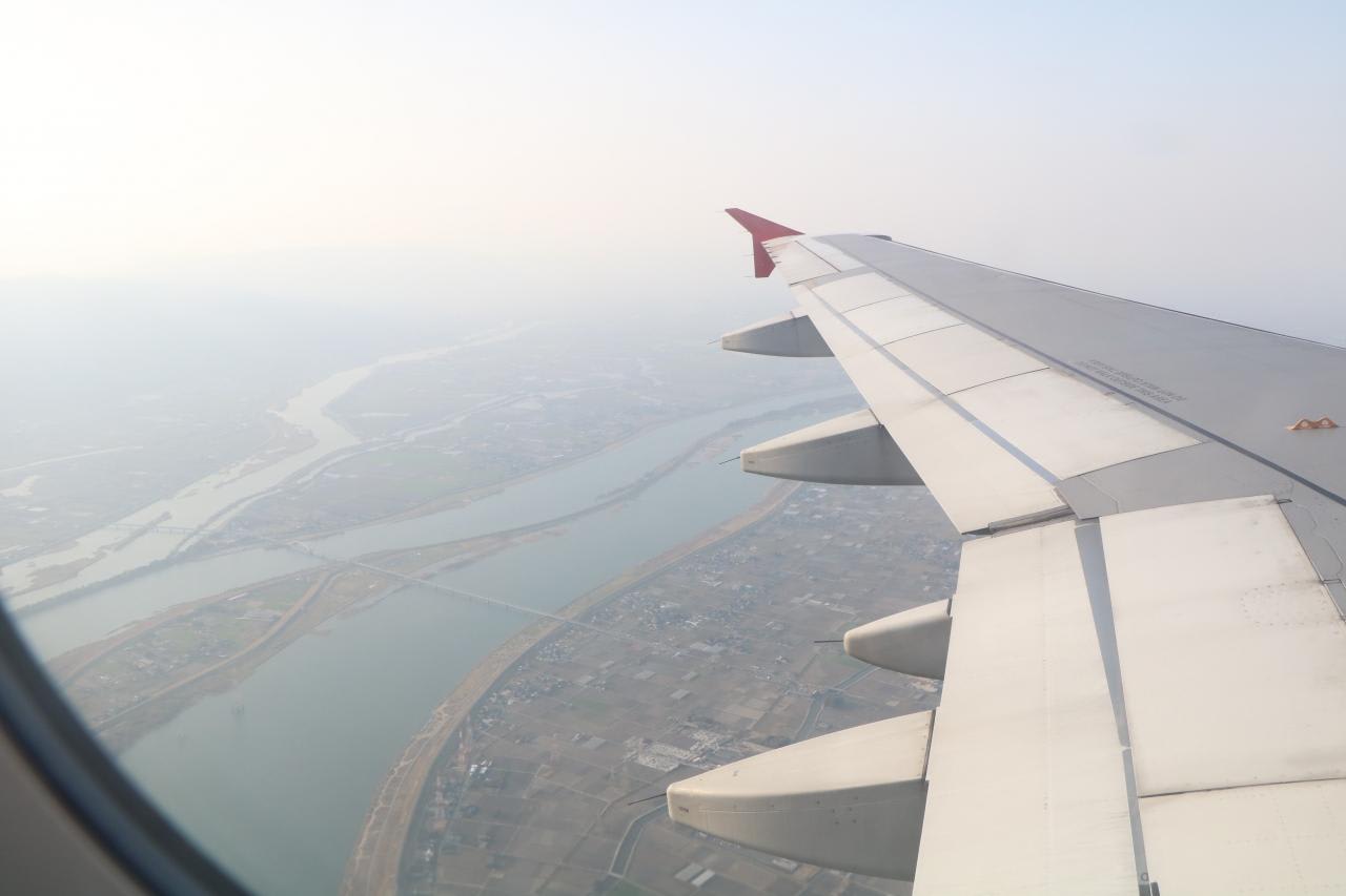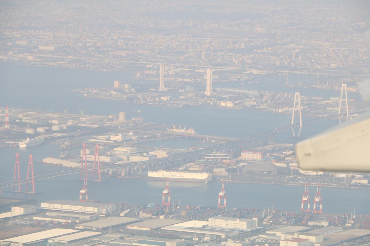4時間飛行し、眼下に揖斐川、長良川、木曽川の木曾三川が見えてきました。もうすぐ名古屋。