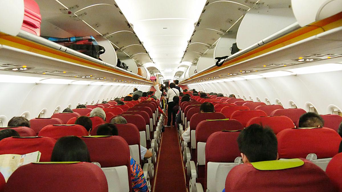 LCCだけに座席の間隔は窮屈で液晶ディスプレイもありません。4時間のフライトだから我慢。
