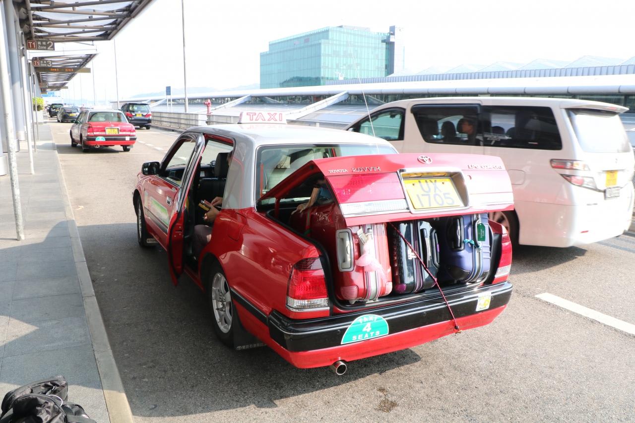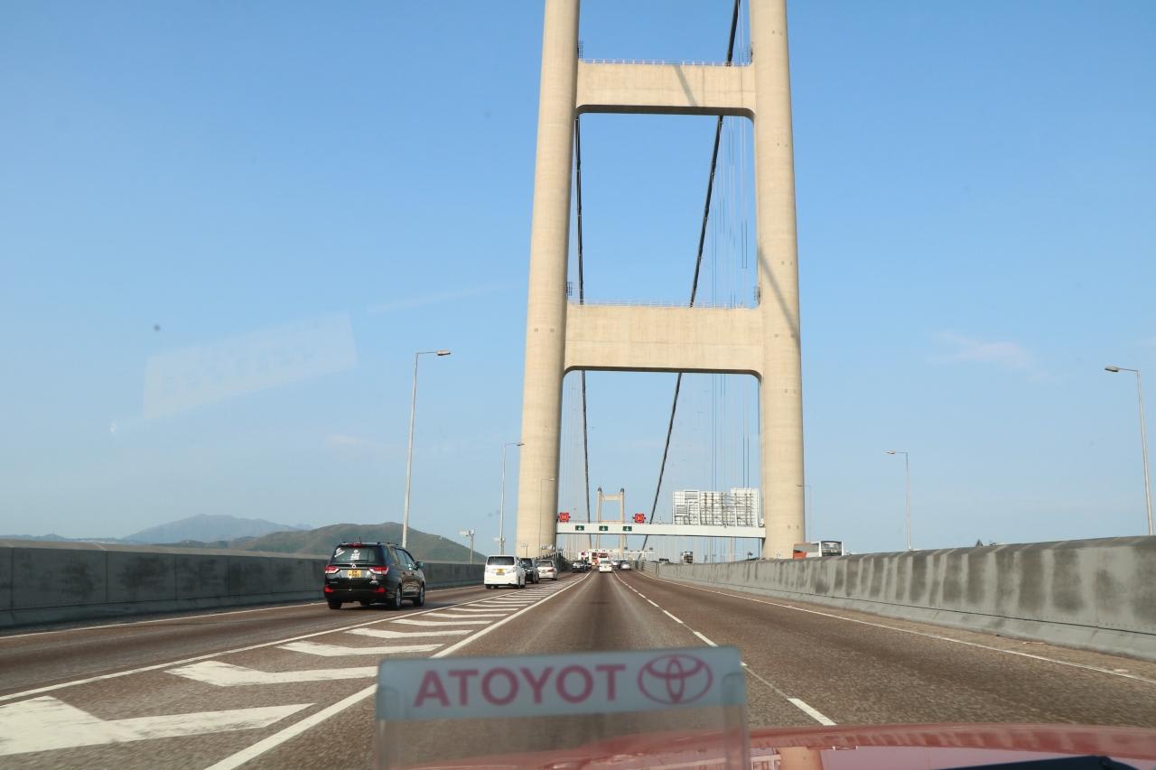 カイタッククルーズターミナルからタクシーを利用し香港国際空港に向かいます。タクシーの車窓から九龍半島とランタオ島を結ぶ橋を望む